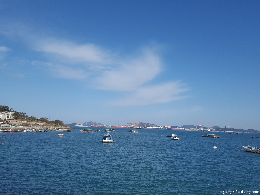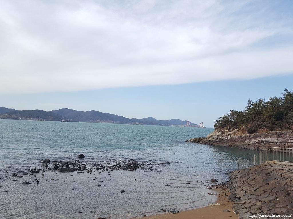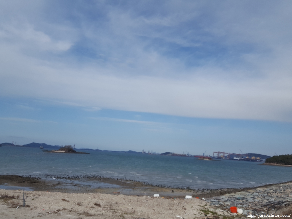 금호 2 방조제 끝자락에서 바다 건너 해남 화원반도를 둘러보니 좌측으로는 저상마을을 둘러싸고 있는 지령산이 제대로 보이고 우측으로는 화원반도 끝자락에 있는 대한조선도 시야에 들어온다.