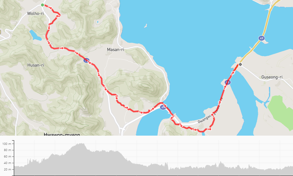 구성삼거리에서 여정을 마무리하고 삼호읍으로 건너가 하룻밤 쉬고 내일 16코스를 이어간다.