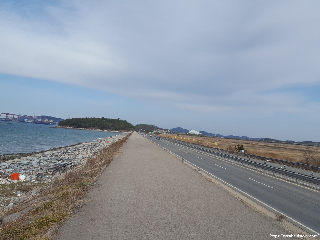 섬에서 잠시 방조제를 내려온 길은 섬을 지나 금호 2 방조제의 나머지 구간을 걷는다.