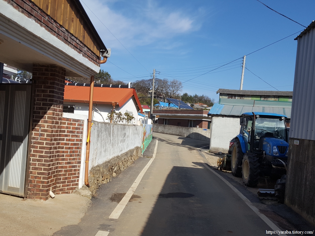 자동차가 쌩쌩 달리는 국도변에 있다가 조용한 마을로 들어오니 이것 자체로 푸근하고 좋다.