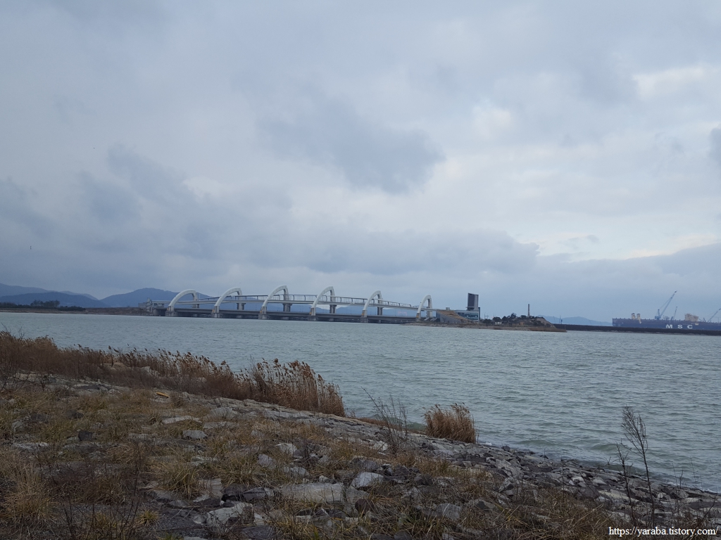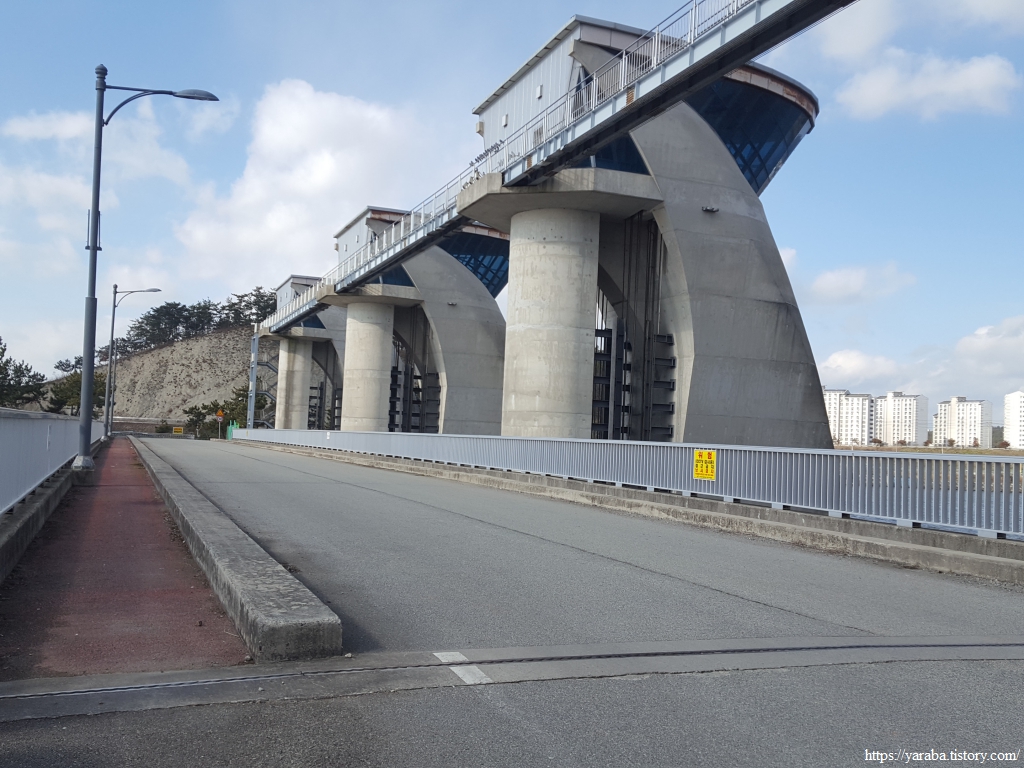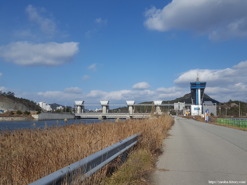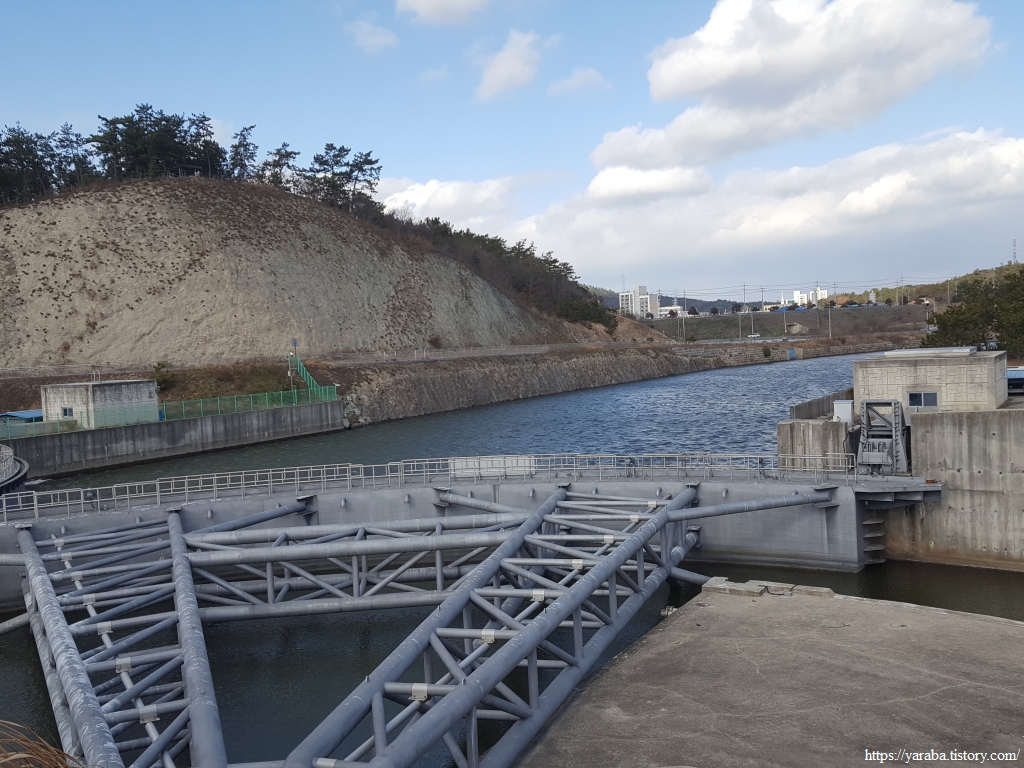 공도교를 건너서 두 가지 수문을 돌아보니 수문 개폐 방식뿐만 아니라 외관도 확연한 차이를 보인다. 영산호와 영암호는 이 수로를 통해서 연결되고 영암호와 금호호 또한 9Km가 넘는 대진수로로 연결되어 있어 하나의 커다란 담수호로 사용할 수 있다.