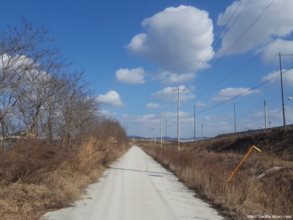 산이교와 영암방조제를 뒤로하고 뚜벅뚜벅 길을 이어간다. 예정에는 바다였을 곳이다. 송도, 뽕섬등을 연결하며 새롭게 생긴 땅이다. 석탄재를 매립했다고 한다.