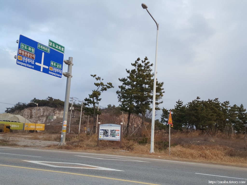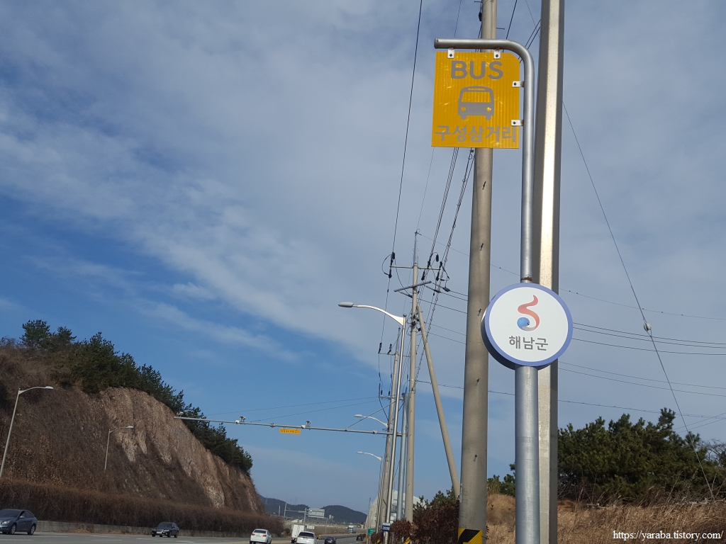 우리는 삼호읍의 프리마모텔에서 휴식을 취했는데 인근에 식당과 편의점도 있고 깨끗한데 저렴해서 마음에 든 숙소였다. 길 건너 황도 정류장에서 노란 해남군 버스를 탔는데, 기사 아저씨는 그곳에서 타는 사람이 특이했는지 어디 가냐고 물으신다. 구성삼거리에 간다고 하니 별말씀 없으셔서 문제없다 싶었다. 버스가 구성삼거리, 다시 말해 달도 교차로 인근에 오자 직진하지 않고 좌회전해서 조금 당황스러웠는데 좌회전하자마자 우리를 내려 주셨다. 알고 보니 화원면으로 가는 버스가 아니라 산이면으로 가는 버스였던 것이다. 여행은 늘 변수가 있기 마련인데 기사분이 행선지를 물어 주신 것이 참 다행이었다. 이른 아침 고맙다는 인사와 함께 버스를 내리니 마음이 가벼웠다. 버스는 우리는 내려주고 산이면을 향해서 달려간다.