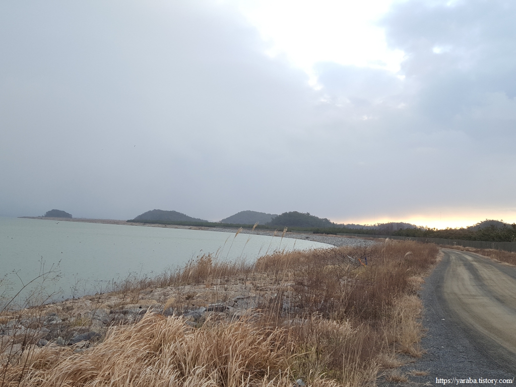 태양광발전소 입구에서 길을 돌아온 서해랑길은 다시 호수변으로 나간다. 이곳도 이전에는 증도라는 섬이었던 곳이다.