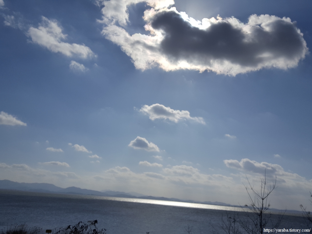 따스한 햇살을 만끽하며 광활한 영암호를 감상한다.