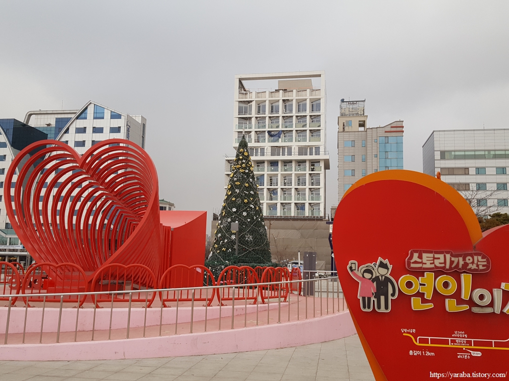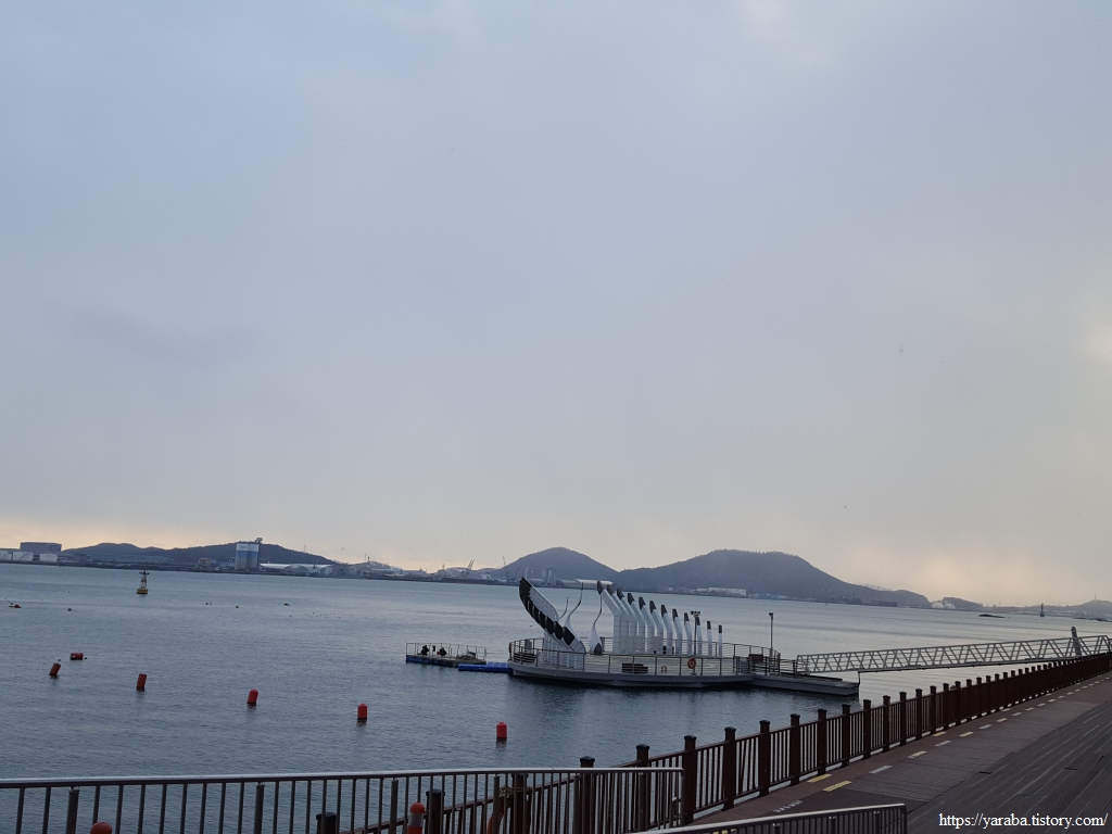 평화 광장 앞으로는 목포 춤추는 바다분수도 있고 스토리가 있는 연인의 거리라 하여 여러 조형물과 갖가지 푸드 트럭과 함께 유원지에나 있을법한 놀이들도 있었다. 찬바람이 세찬 하루였지만 그래도 날은 맑았는데 저녁이 되니 갑자기 눈이 내리기 시작한다. 숙소가 평화광장 인근이라 다행이었다.