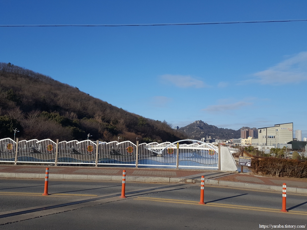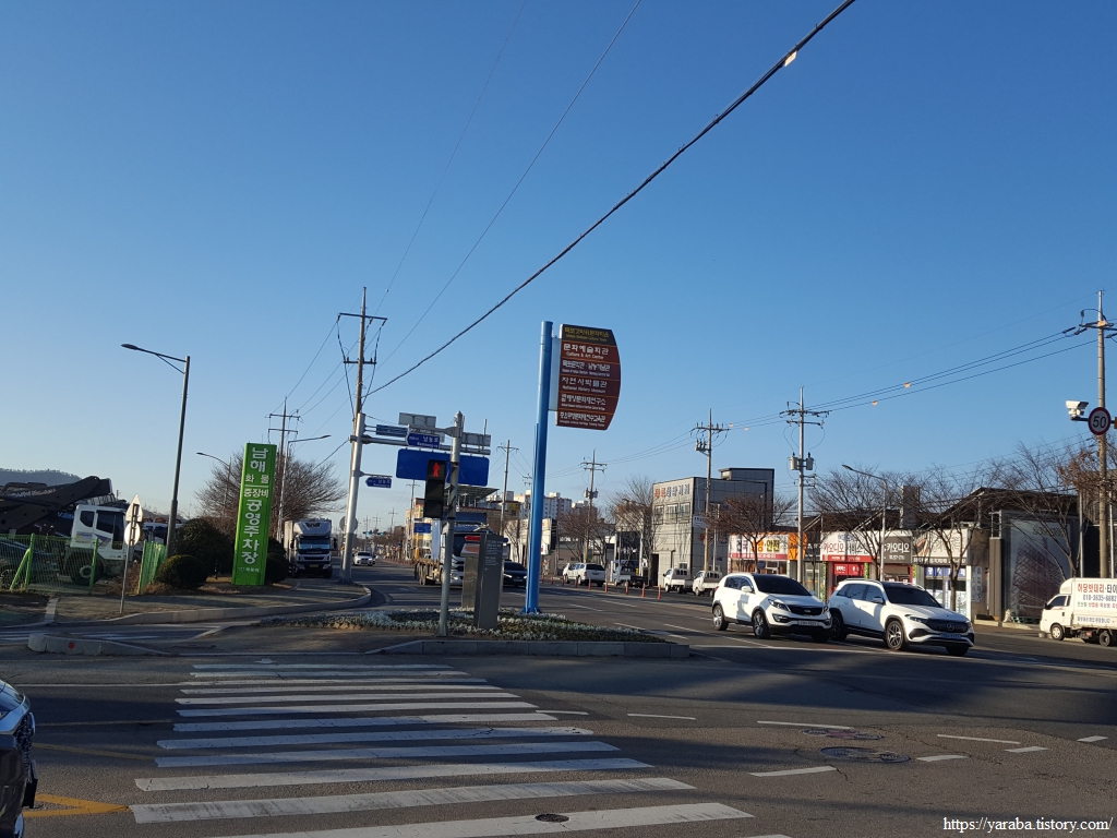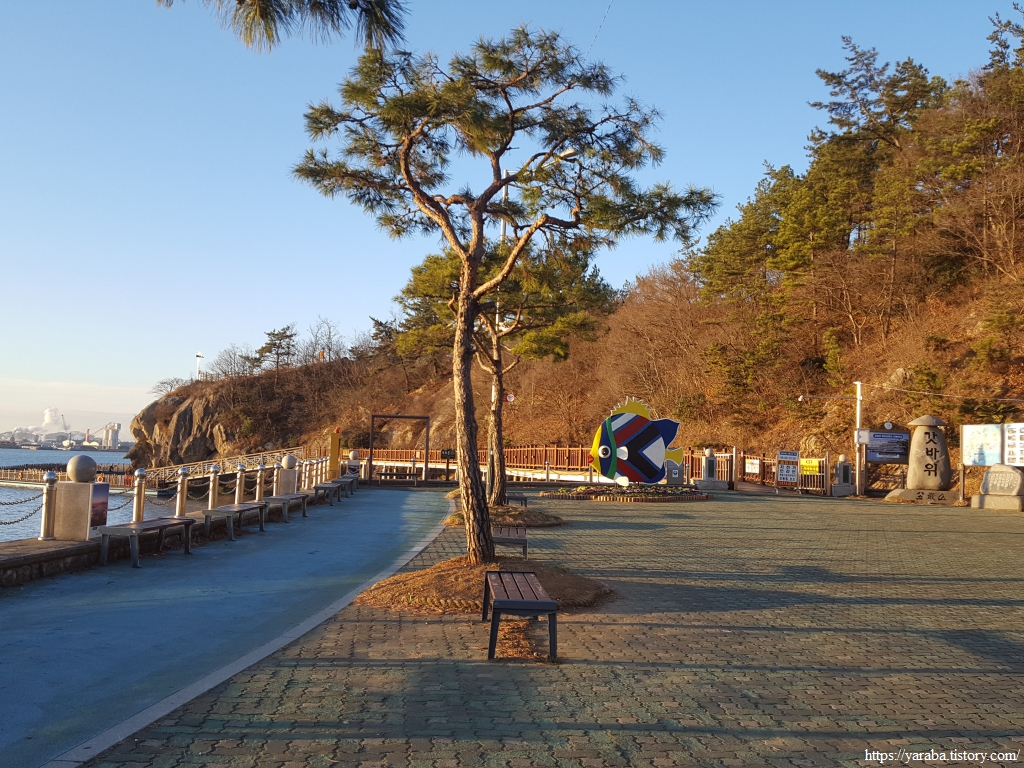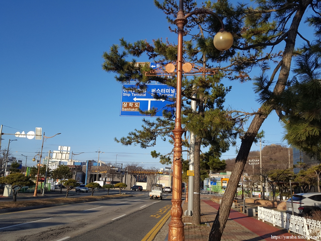 도로를 따라 걷는 길은 제일중학교 교차로에서 삼학도 방향으로 좌회전하는데, 교차로에 걸린 목포 갓바위 문화 타운 표지판을 보면서 방향을 거꾸로 해야 처음 오는 사람들에게 도움이 되는 것 아닌가? 글쎄, 요즘은 모두 지도앱과 내비게이션이 있으며 저걸 보고 헷갈리겠어? 하는 수다를 나누며 길을 건넌다.