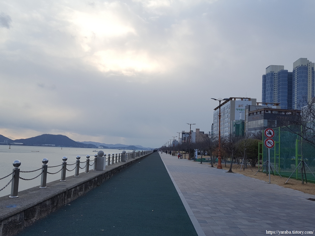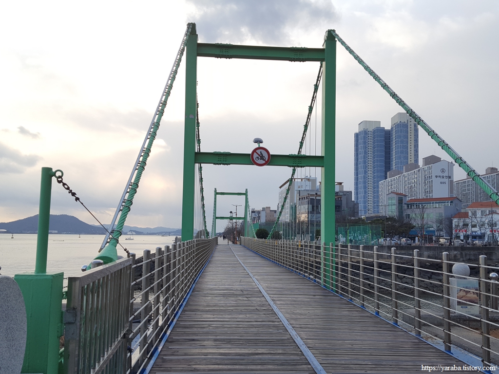 "평화의 다리"라는 이름이 붙은 인도교를 넘어서 해안 산책로를 이어간다. 목포시가 1990년대 후반부터 바다를 매립하여 건설한 하당신도시에 해당하는 지역이다. 인근 남악 신도시와 함께 수많은 마천루와 아파트가 들어선 곳이다. 그렇지만 목포시는 인구 20여만 명에서 감소 추세에 있다고 한다.