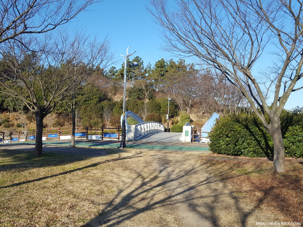 부두까지 나왔던 길은 다시 삼학도 공원 안으로 들어가서 공원 산책로를 걸어간다. 세 마리 학이 내려와 섬이 되었다는 전설이 있는 삼학도는 지금은 공원 안으로 물길이 있어 섬처럼 보이기는 하지만 70년대 초까지 이루어진 간척 공사로 섬은 잘려나가고 모두 육지화되었던 곳이다. 큰 배가 접안할 수 있는 항구를 만들겠다는 계획의 일환이었다. 이후 시민들의 복원 열망에 따라서 1999년부터 복원 사업이 시행되어 지금에 이르고 있다고 한다.
