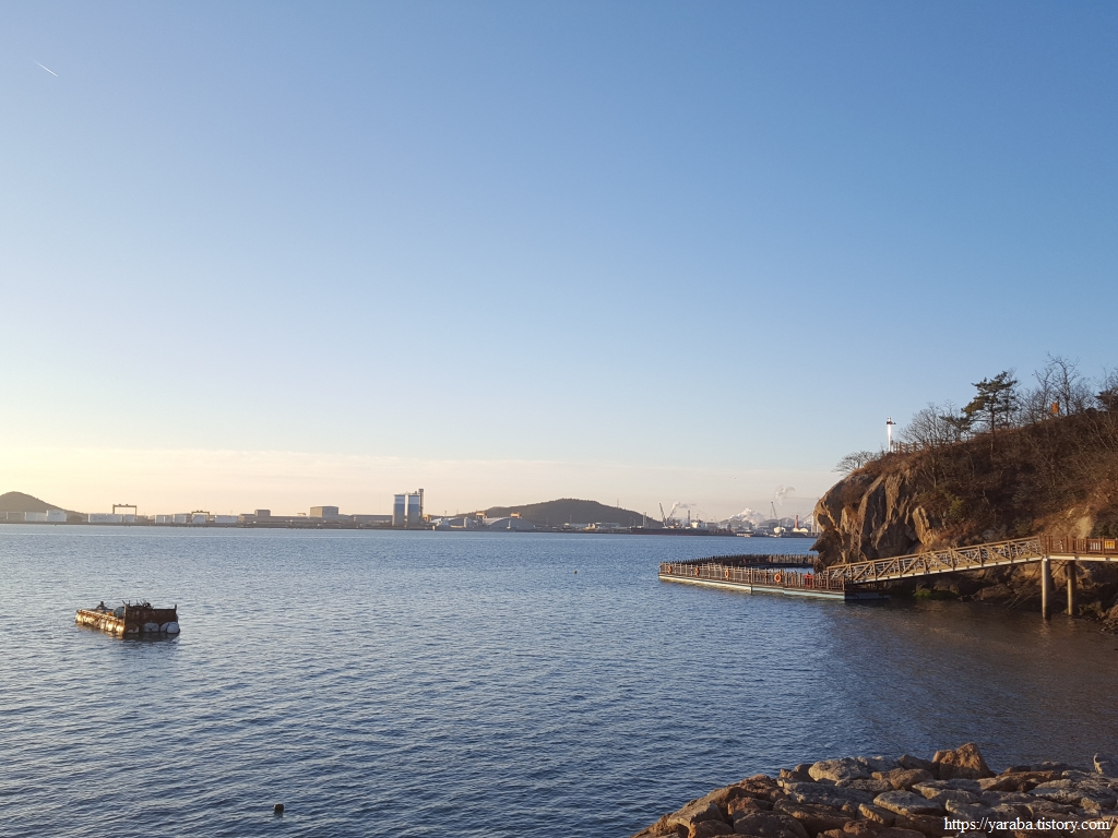 동쪽으로 떠오르고 있는 눈부신 태양은 스쳐 지나가기에는 정말 아름답다. 산책로 끝자락에 이르면 갓바위를 잘 볼 수 있도록 바다로 갓바위 탐방로를 만들어 놓았다. 태양에 조금씩 녹고 있는 서리를 조심조심 밟아가며 탐방로를 걸어간다.