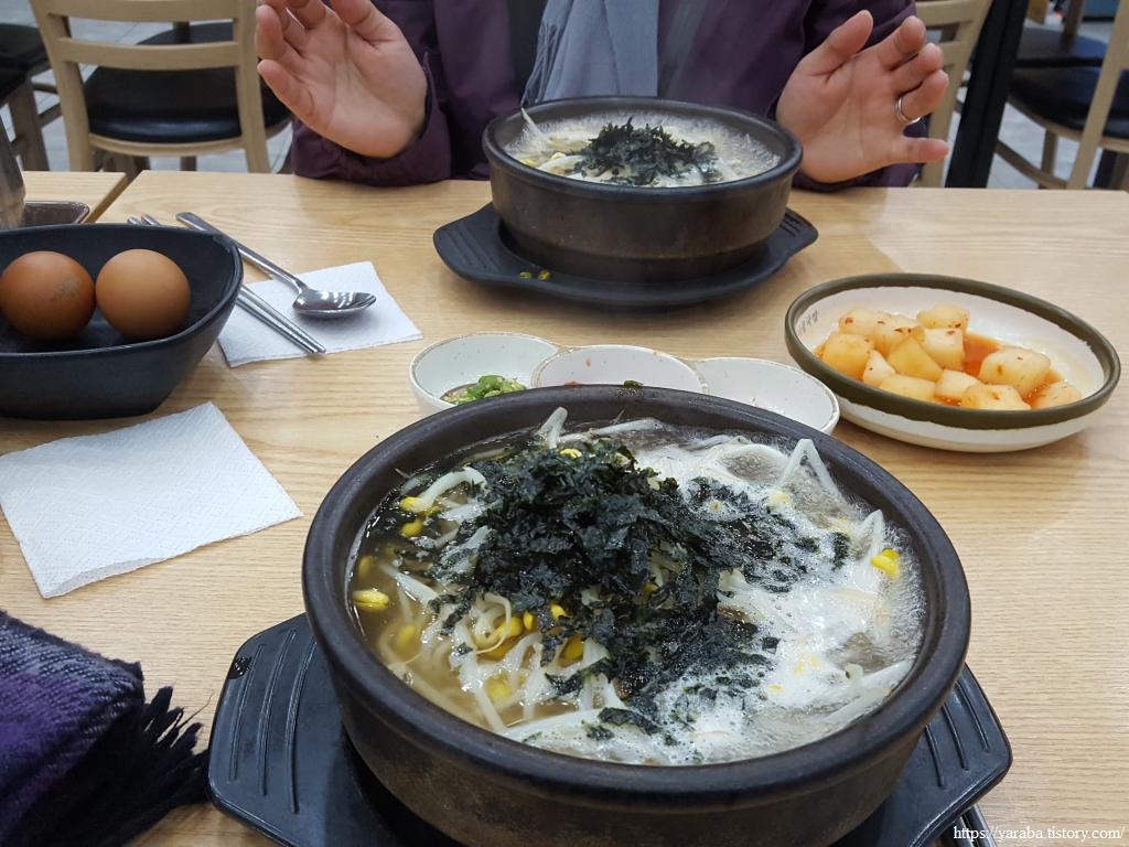 오늘의 저녁 식사는 4,500원짜리 콩나물국밥이었다. 국물도 훌륭했다. 외식하면 양이 많아서 보통 과식하게 마련인데 콩나물국밥은 언제나 안심이다. 24시간 운영하는 식당이었는데 사람들이 탁자마다 하나씩 시켜 먹는 미니족발 또한 매력적이었다.