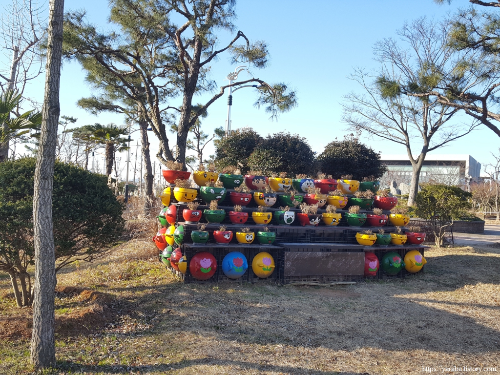 바다 위에서 사용하던 플라스틱 부이로 익살스러운 화분을 만들어 놓으니 이 또한 발길을 붙잡는다.