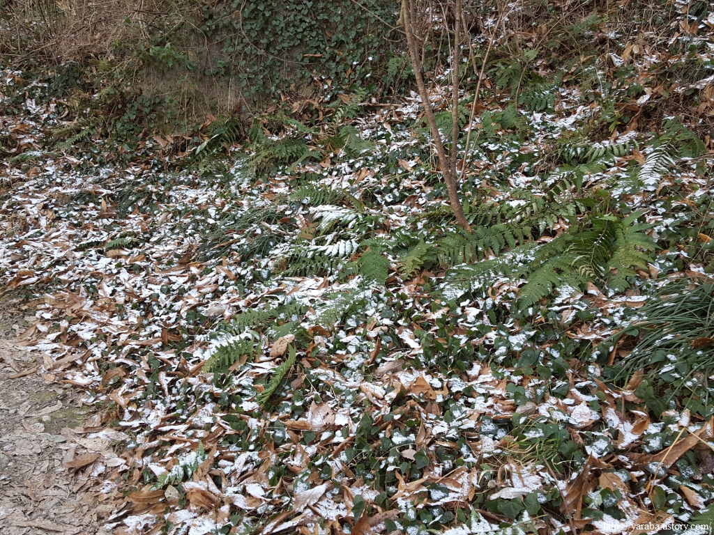 북쪽으로 향하고 있는 유달산 둘레길은 남향이 아니다 보니 그늘진 곳은 땅도 꽁꽁 얼어있고 어제저녁 내렸던 잔설도 남아 있다.