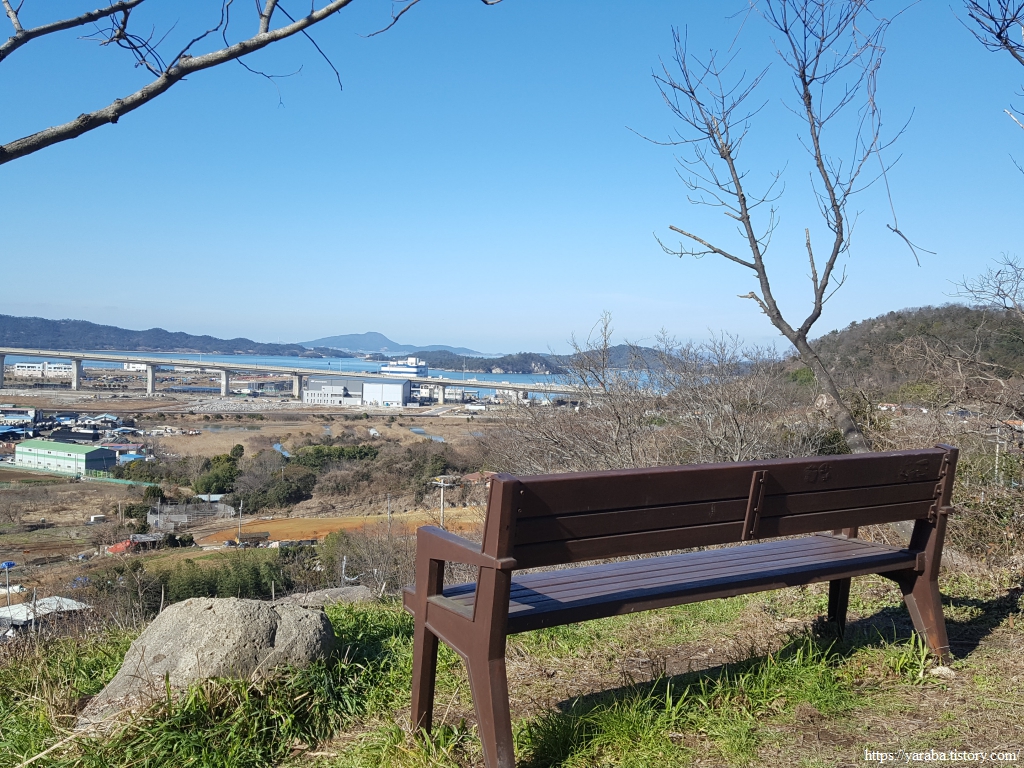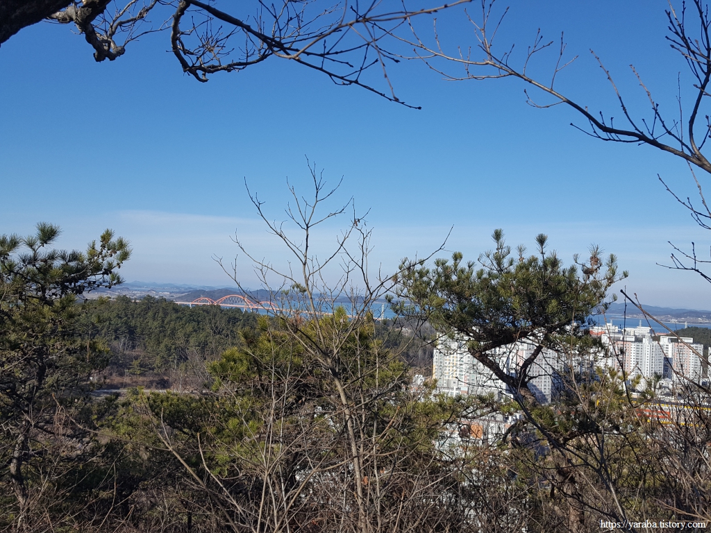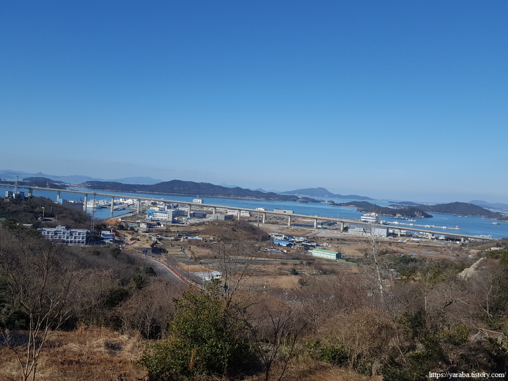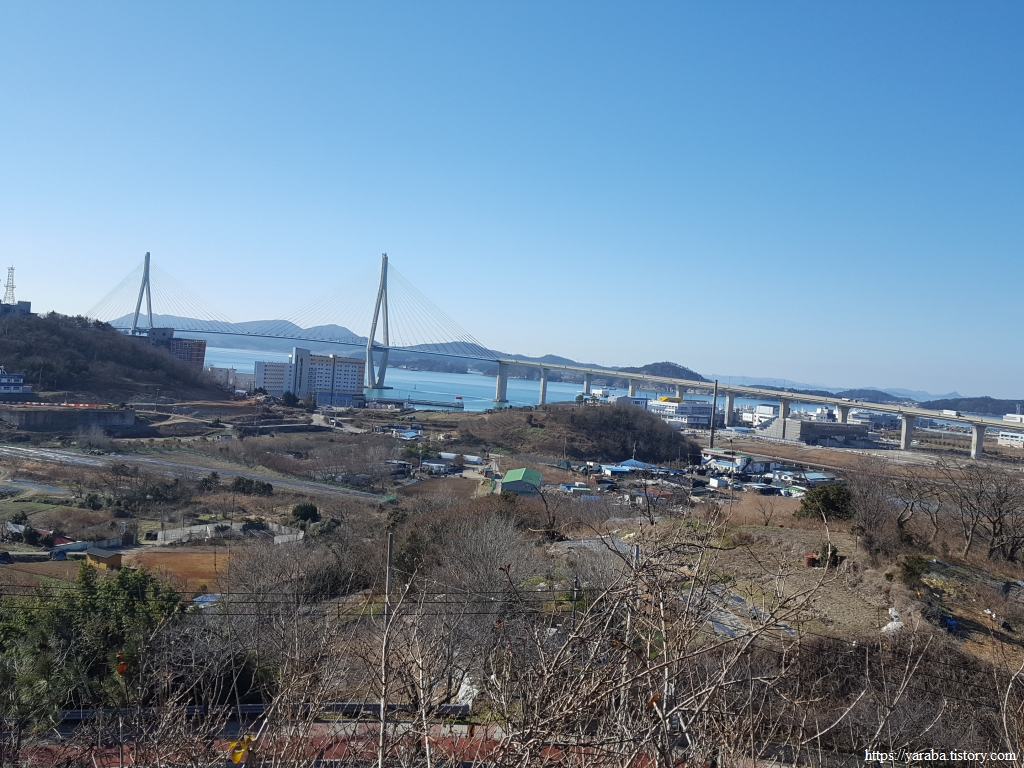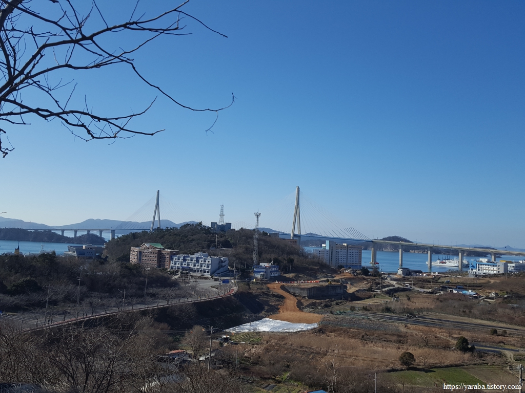 북쪽으로는 아파트 단지 너머로 목포시와 신안군을 연결하는 압해대교도 보인다. 신안군청이 자리하고 있는 압해도는 한반도에서 15위에 해당하는 크기를 가진 큰 섬으로, 진도, 완도, 남해도처럼 압해도도 다리로 연결되어 있으니 섬 아닌 섬이다.