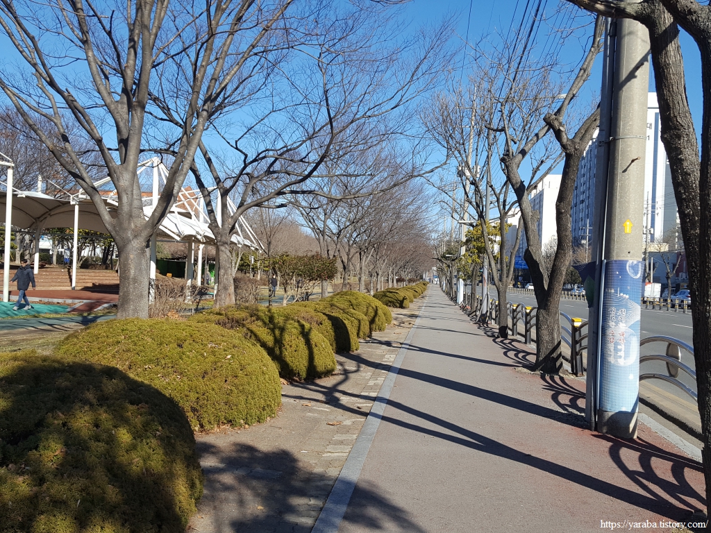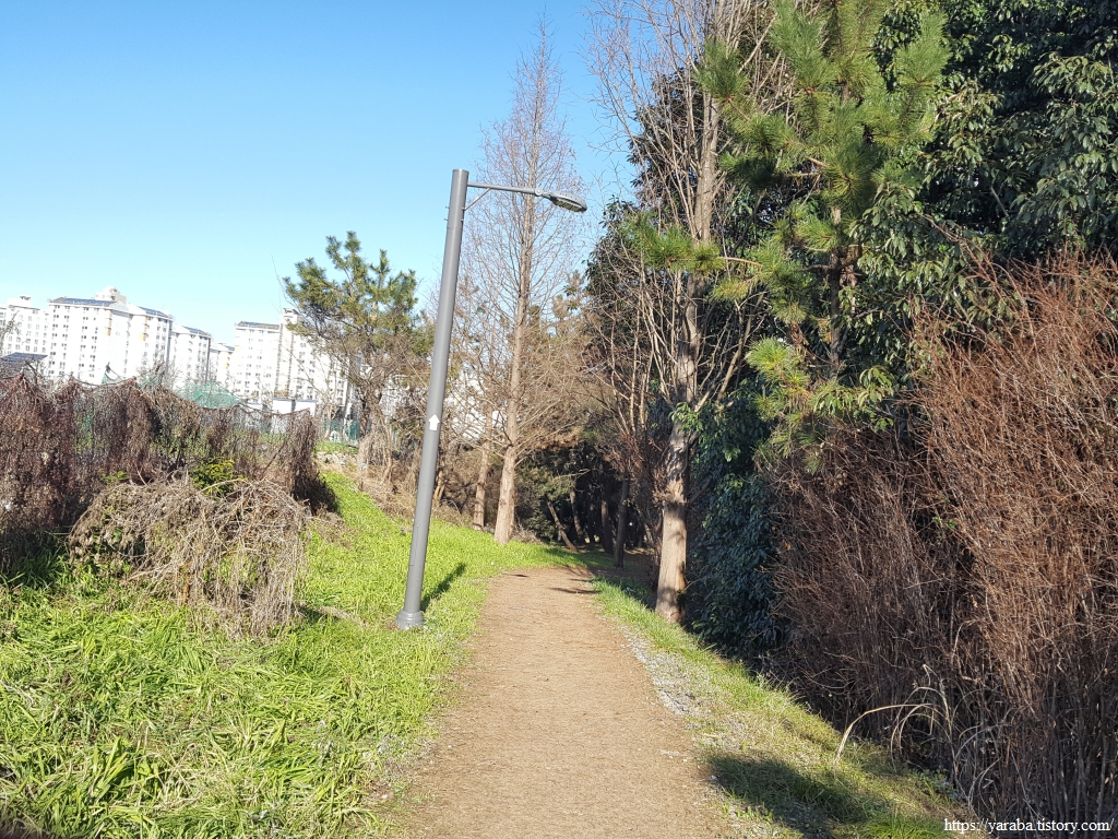 커피숍에서 잠시 몸을 녹인 우리는 고하대로와 아파트 단지 사이의 공원길을 따라 북쪽으로 이동한다.