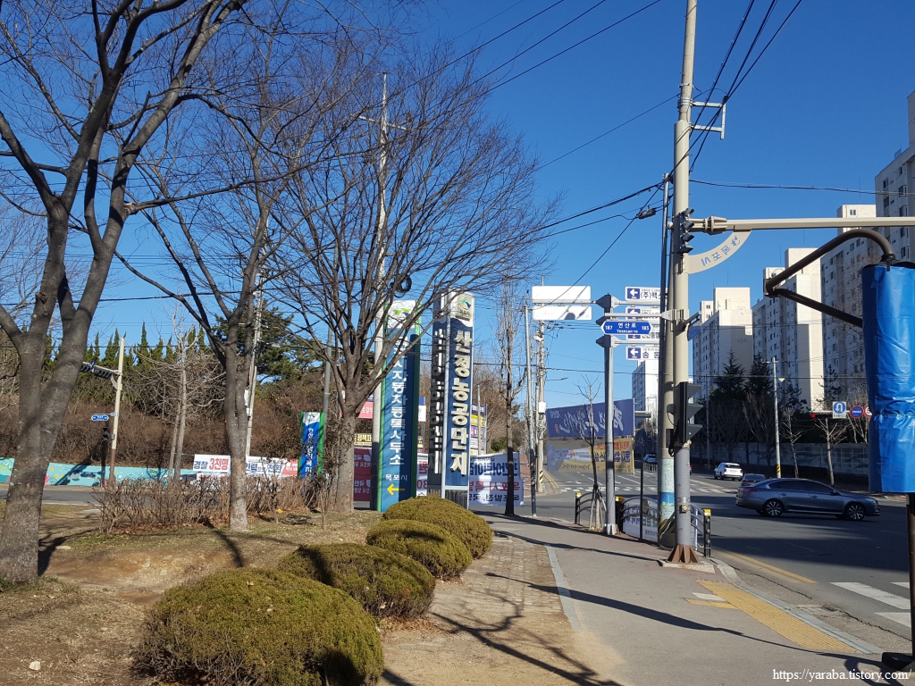 아파트 단지와 함께 걷던 길이 끝나면 산정농공단지 표지와 함께 산업단지 지역으로 넘어간다.