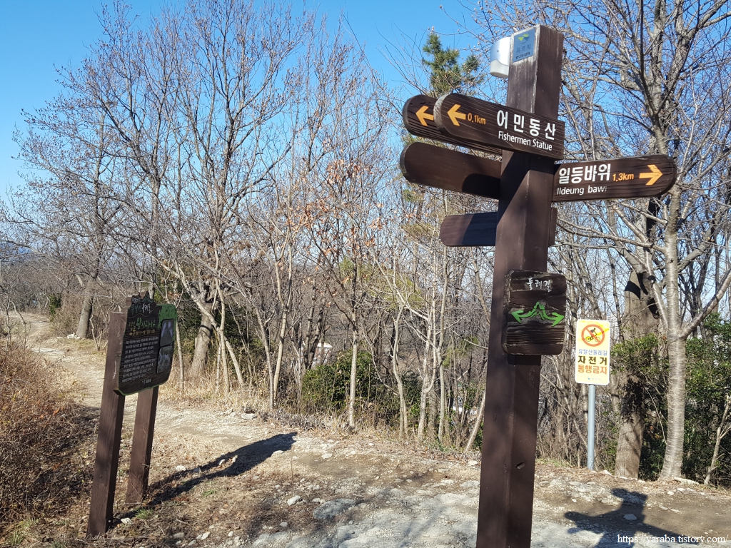 바위 아래를 지나 산을 내려가는 것 같았지만 둘레길은 다시 작은 고개를 지나 어민동산 쪽으로 향한다.