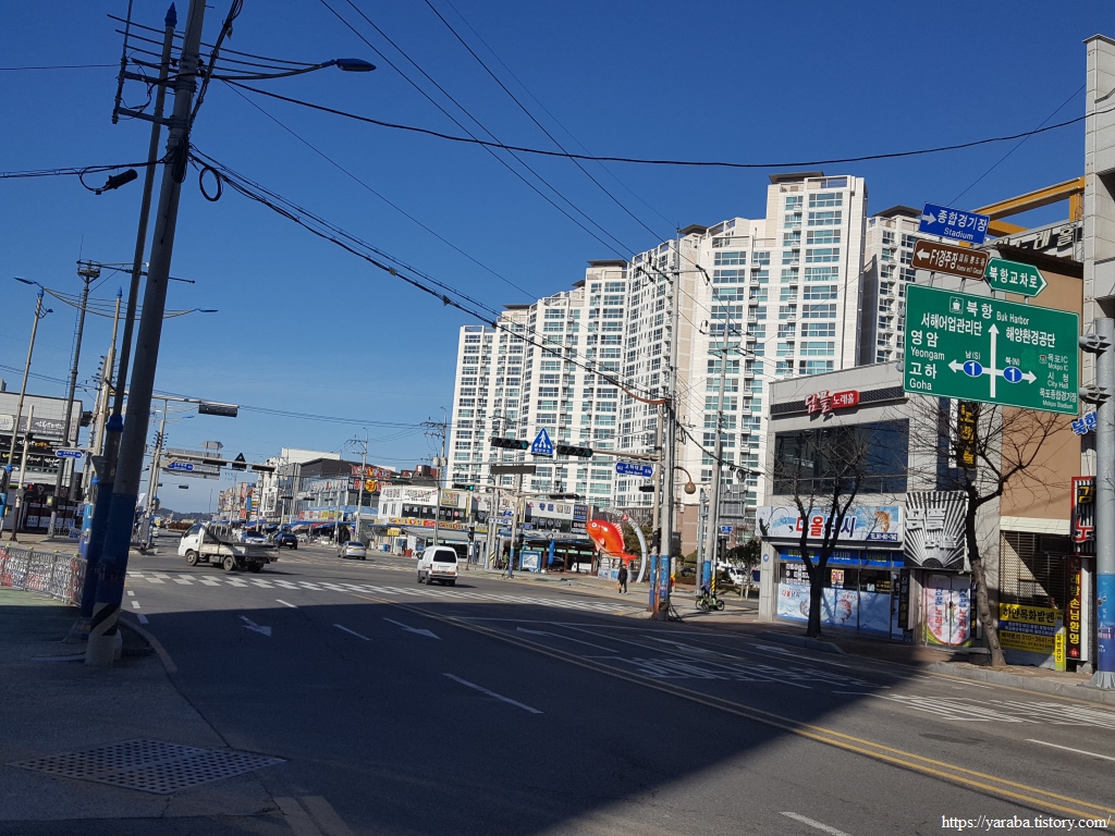좌회전한 길은 북항교차로까지 이동하여 우회전한다. 날은 쾌청해도 온도가 낮아서 잠시 쉬어가기로 했다. 이곳의 커피 전문점들은 2천 원대의 가격으로 가격이 착해서 부담 없이 몸을 녹이며 쉬어갈 수 있었다.
