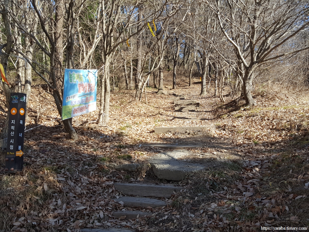 옥녀봉 표식을 따라 산을 오르기 시작한다. 옥녀봉은 유방산의 또 다른 이름이다. 거의 똑같은 봉우리 두 개가 있다고 유방산이라는 이름이 붙었다고 한다. 산 아래로는 목포로 가는 호남선 철도가 지나는 곳이기도 하다.