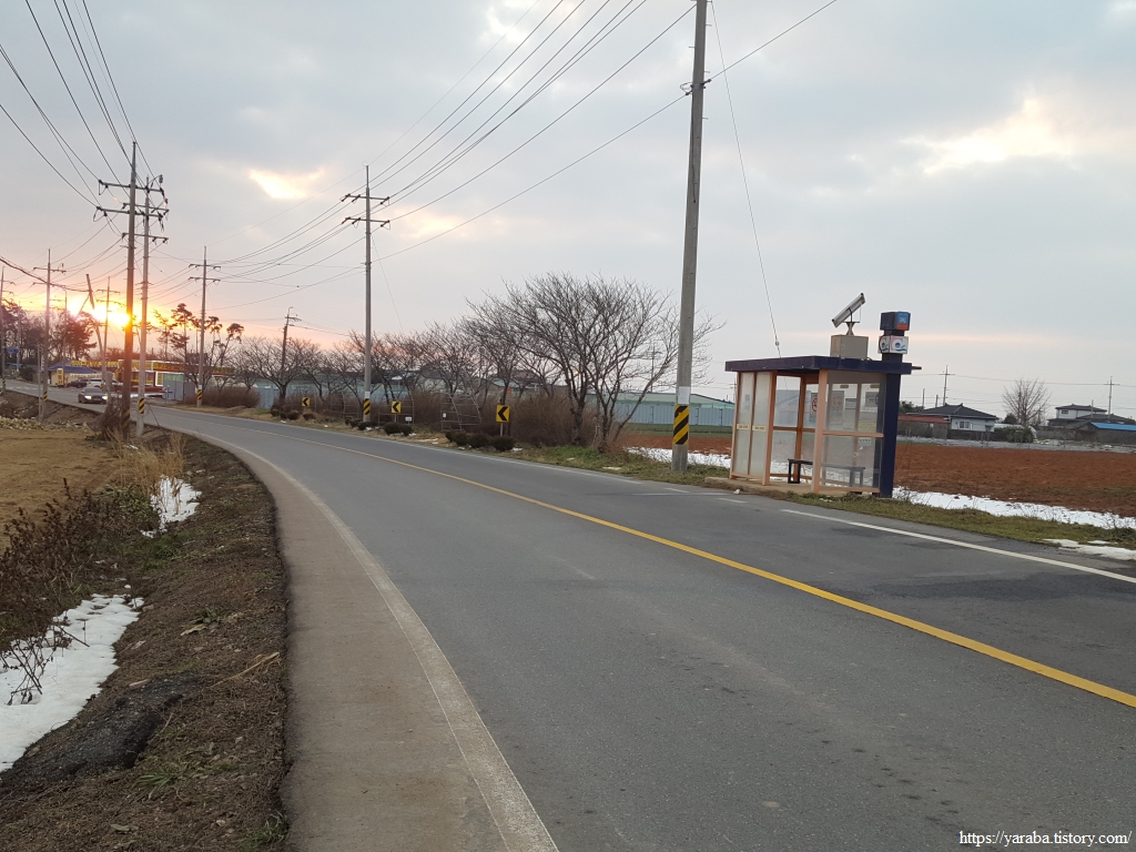 어느덧 길은 현경면에서 시작하여 운남면을 남북으로 가로지르는 운해로 도로에 도착했다. 두모마을 정류장을 지나서 운해로 도로를 따라서 용동마을까지 가면 되는데 아무래도 용동 마을로 가는 도중에 무안읍으로 가는 버스가 지나갈 것 같았다. 그래서 두모 마을에서 오늘의 여정을 멈추고 버스를 기다렸는데 아니나 다를까 무안으로 가는 버스가 바로 도착했다.