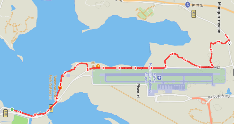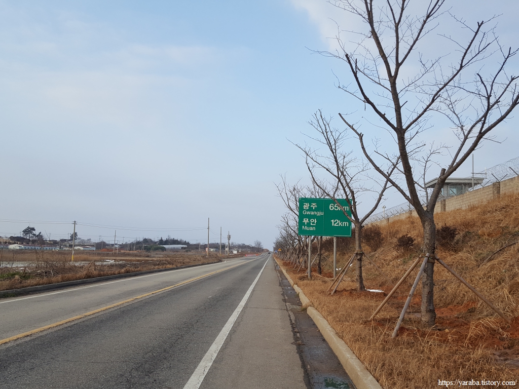 톱머리 해수욕장을 빠져나온 길은 무안 공항 서쪽으로 이어지는 청운로 도로로 나간다.