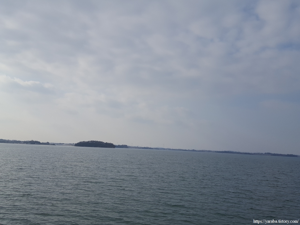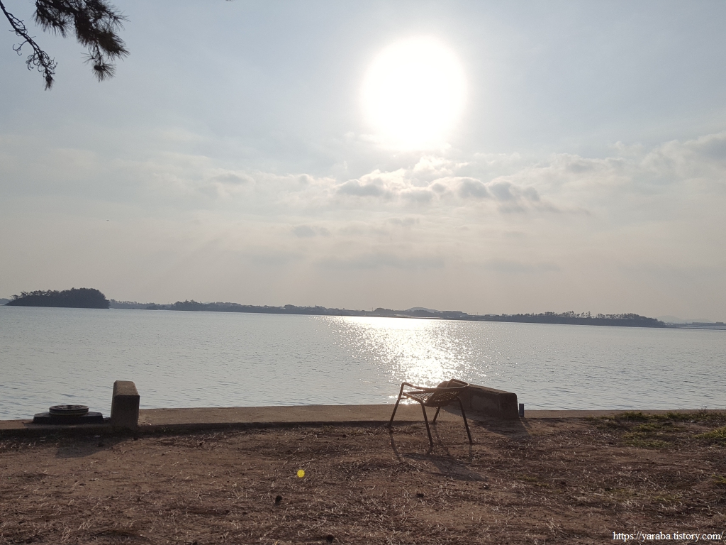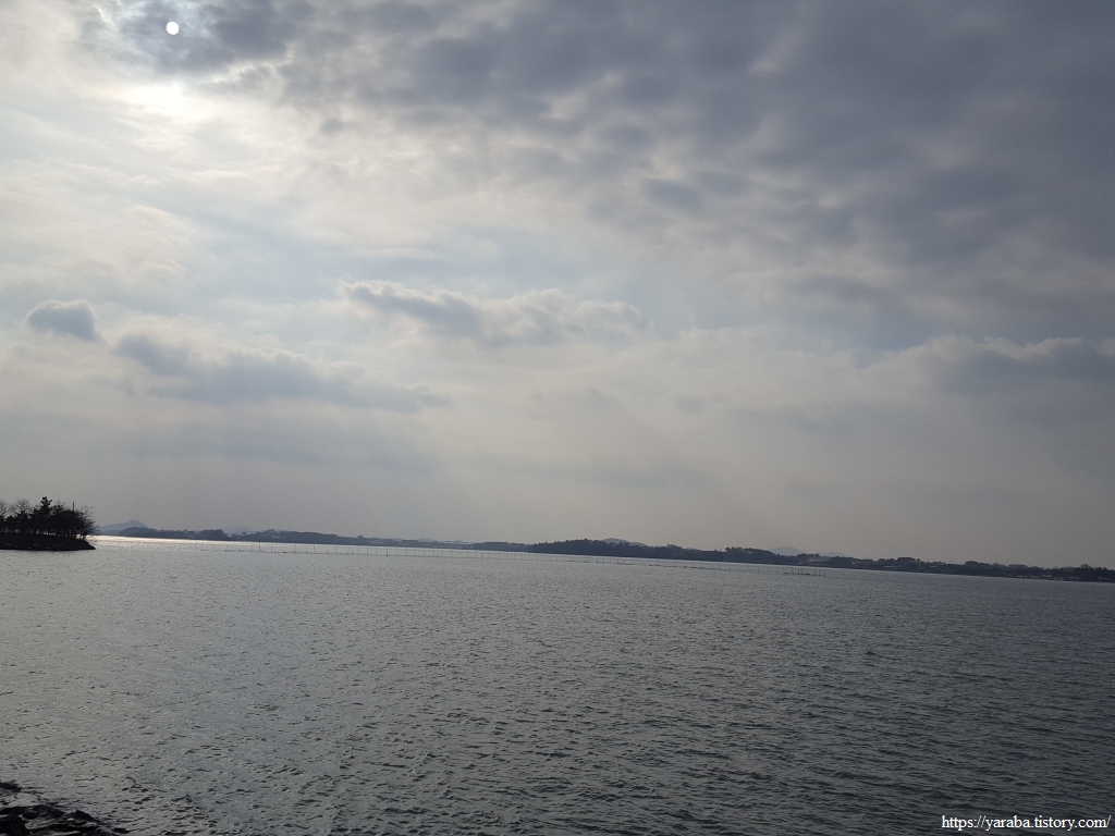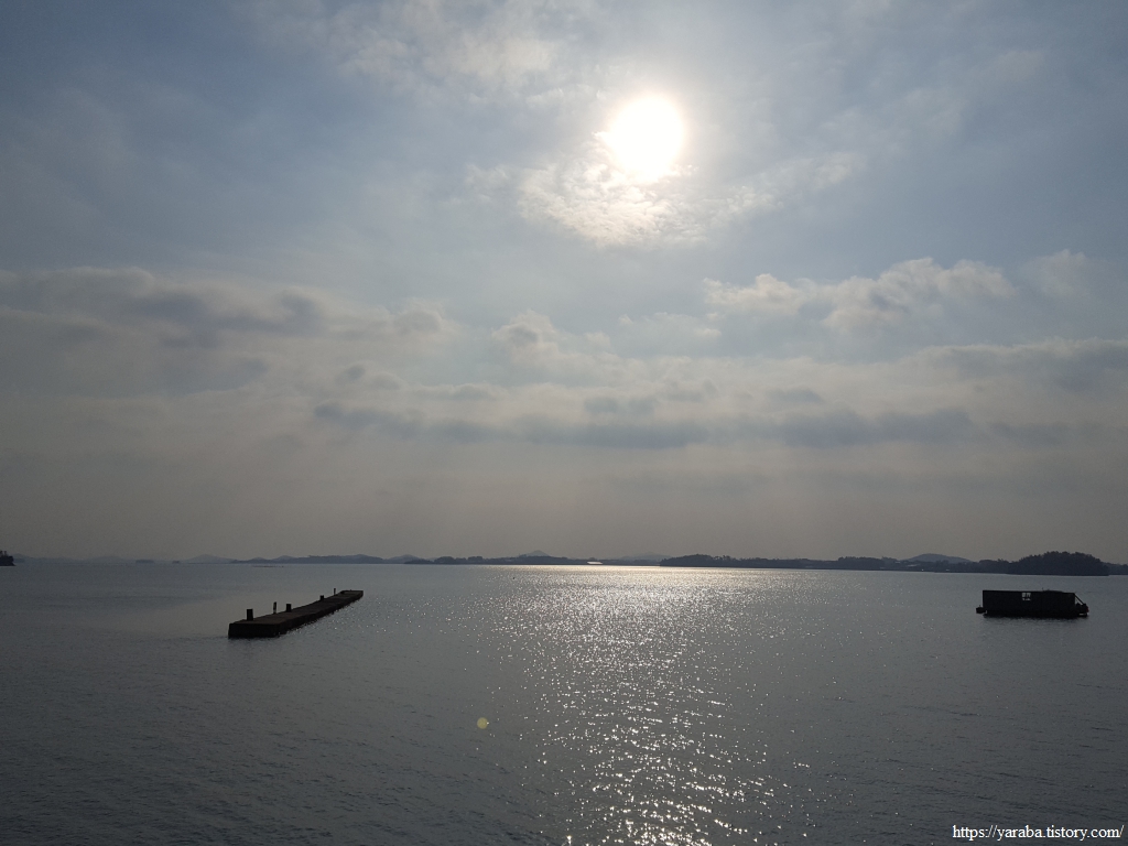 서쪽 하늘로 내려가고 있는 오후의 태양이 청계만 바다에 은빛 물결을 만든다.