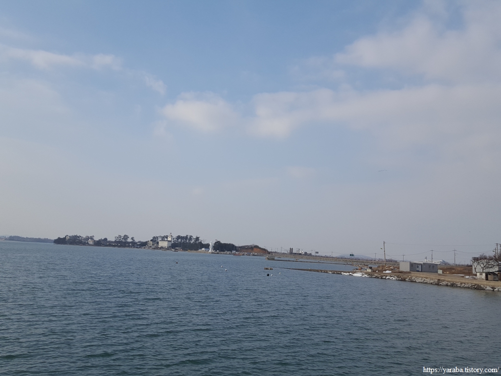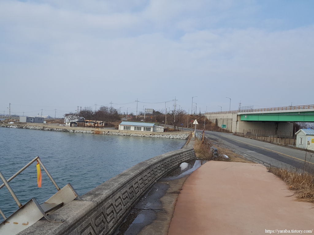 길은 어느덧 창포방조제로 들어섰다. 톱머리항이 바로 앞으로 다가왔다.