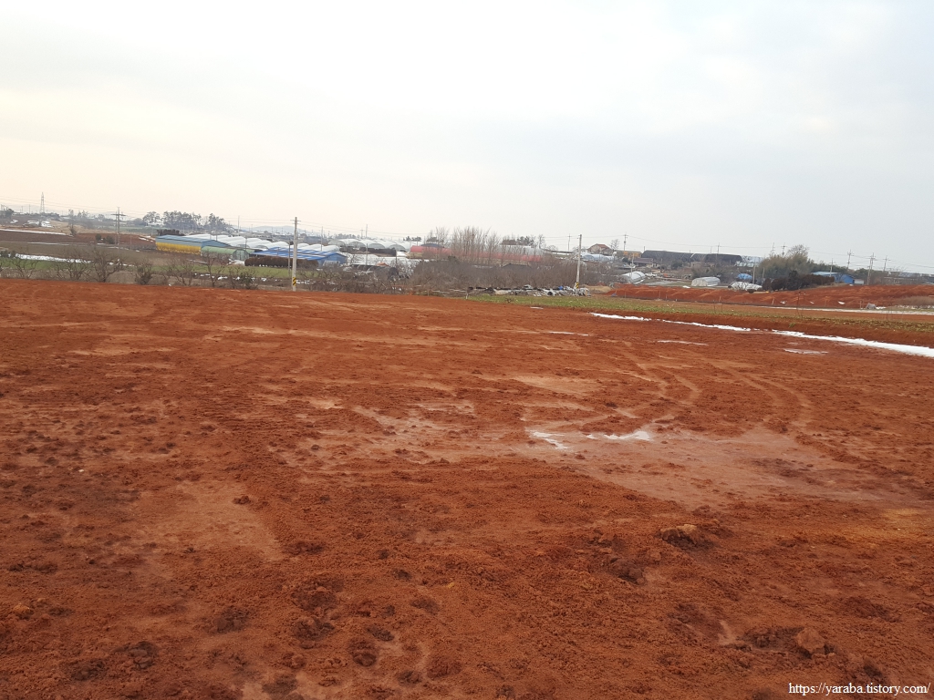 붉은 황토를 보니 작년 가을 고구마를 심었던 모양이다. 무안이 양파도 유명하지만 고구마와 마늘도 유명세가 있다. 이 황토가 빗물에 씻겨 바다로 내려갔을 테니 무안에서는 갯벌도 황토 갯벌이라 부른다.