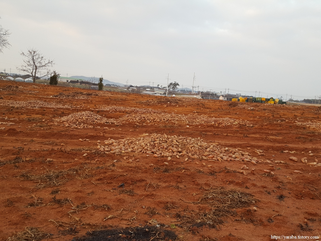 와우! 무슨 사연이 있는지는 모르겠지만 황토밭에 버려지는 고구마가 엄청나다. 밭 앞에 서서 한참을 아깝다! 아깝다! 를 연발했다.
