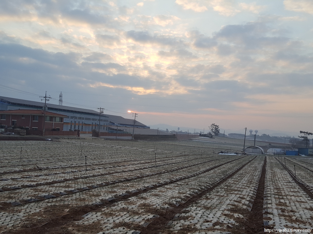 이른 아침 버스를 내려 두모마을에서 용동마을로 향하는 길의 풍경은 억! 소리 나오는 광활한 양파밭 풍경이다. 광활한 들판을 가득 채운 양파밭에 그저 억! 소리가 나온다.