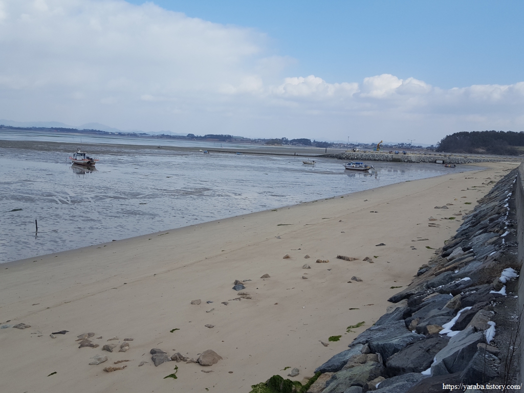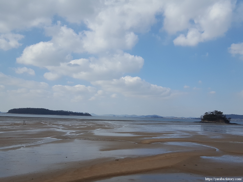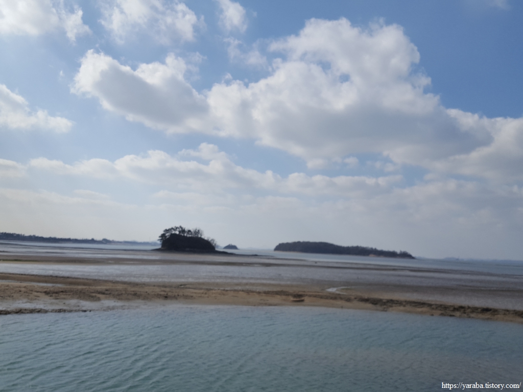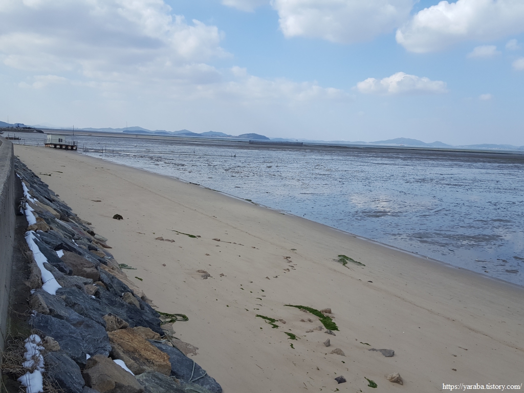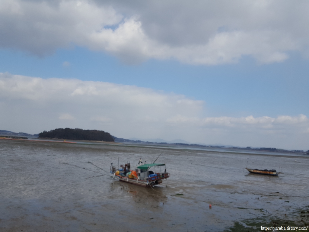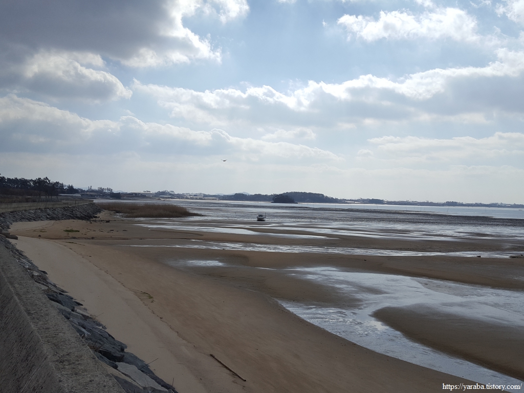 조금나루를 벗어나며 시야로 맞이하는 풍경은 물 빠진 바다의 거대한 갯벌이다. 광활한 들판을 마주하는 느낌. 오전 오후로 물이 들고 나는 갯벌에서 풍겨지는 느낌은 조금 다른 듯하다.