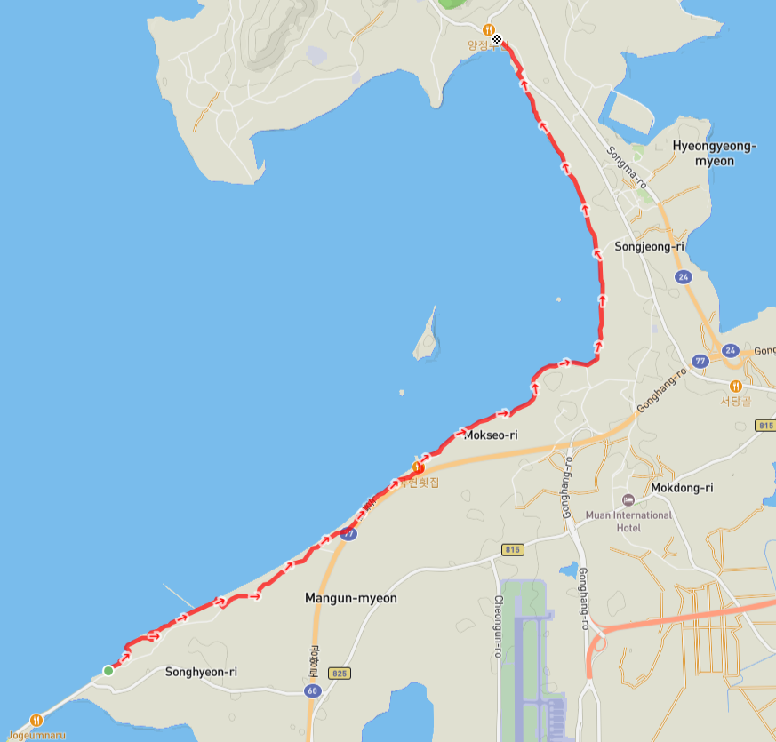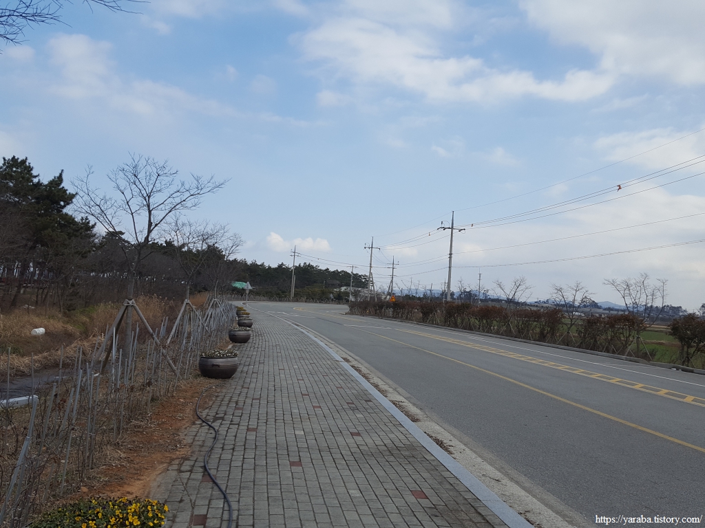 낙지공원에서의 넉넉하고 포근했던 휴식을 끝내고 해변에서 무안노을길 도로로 나가서 길을 이어간다.