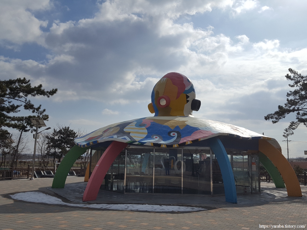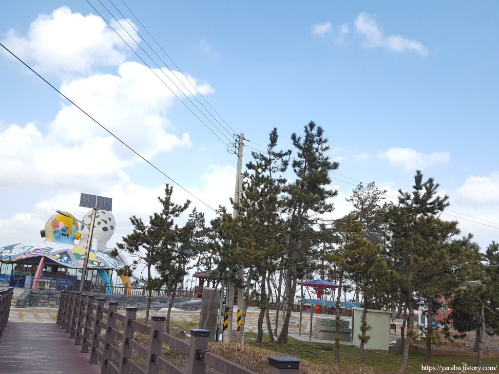 초대형 낙지 전망대 앞에 있던 낙지 모양의 쉼터도 훌륭했다. 따뜻한 커피를 마시며 편안한 의자에 앉아 꽁꽁 얼어버린 몸을 녹일 수 있었다.