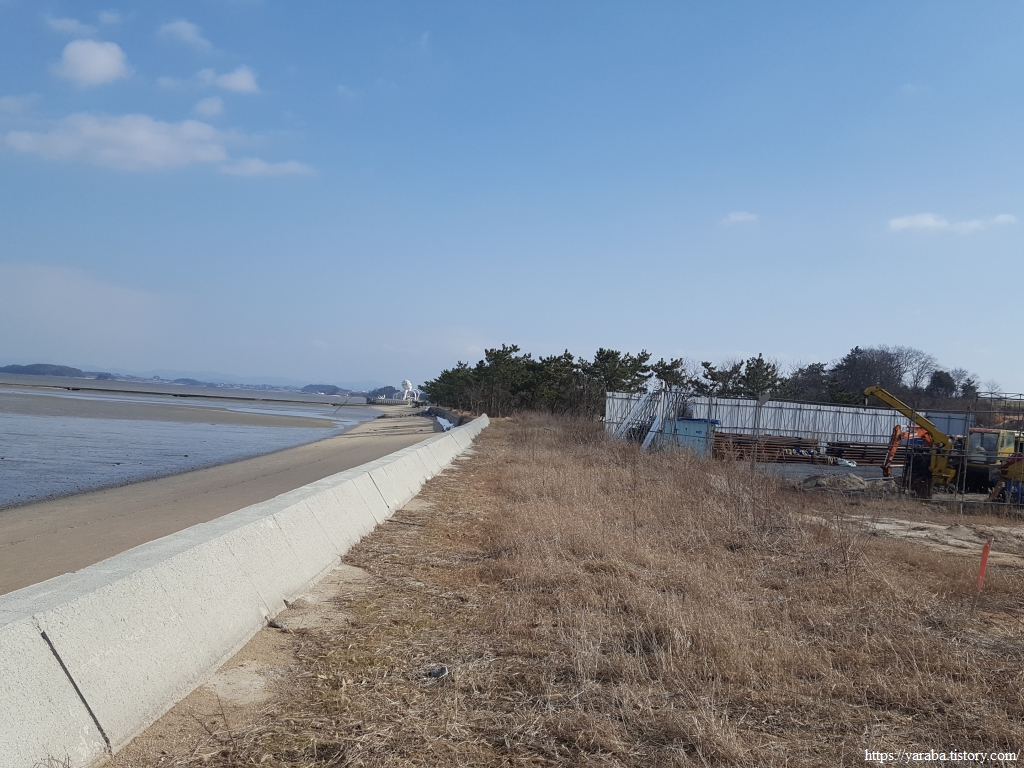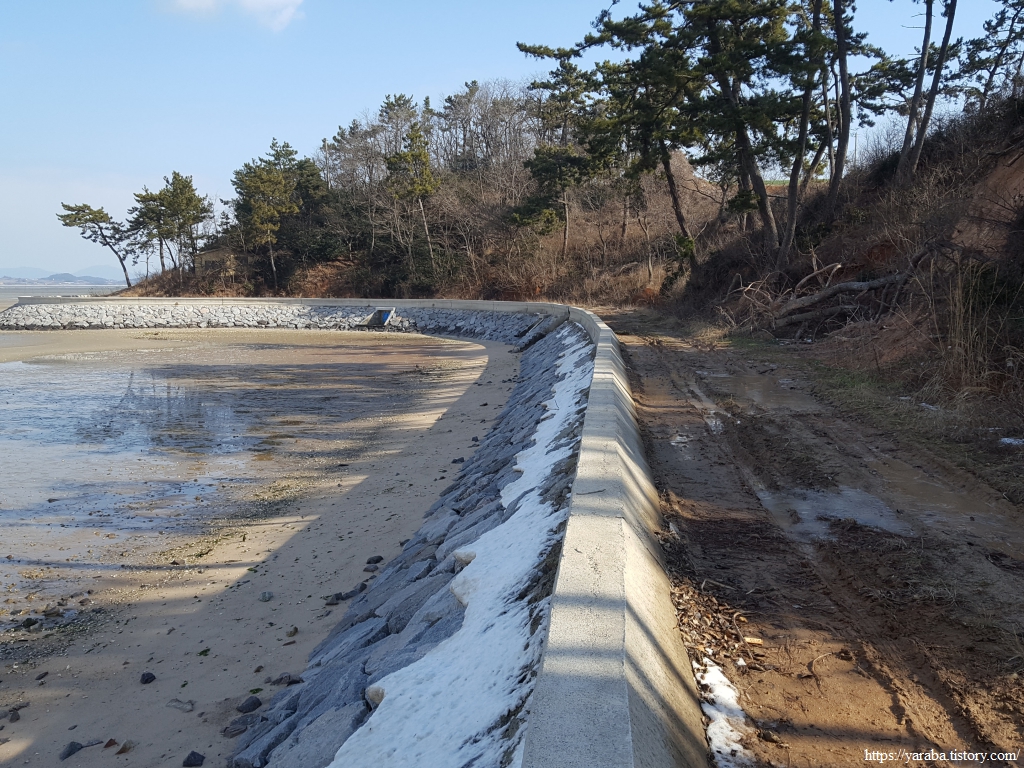 해안 산책로를 넓게 다듬어 놓고 길 옆에 해당화도 심어 놓아서 걷기족에는 환영받을 만한 길이지만, 흙길이어도 배수만 잘되고 물이 고여 흙탕길만 되지 않는다면 그 상태로도 좋다.