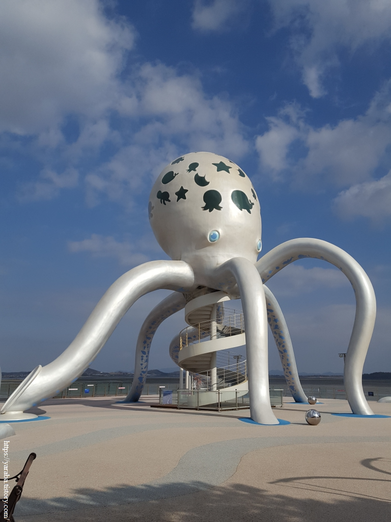 괴물 영화에서나 볼법한 초대형 낙지가 공원을 지키고 있다. 무안의 대표적인 명소답게 이른 아침부터 나들이 나온 관광객들의 인증사진 배경을 하느라 초대형 낙지는 쉴 겨를이 없다.