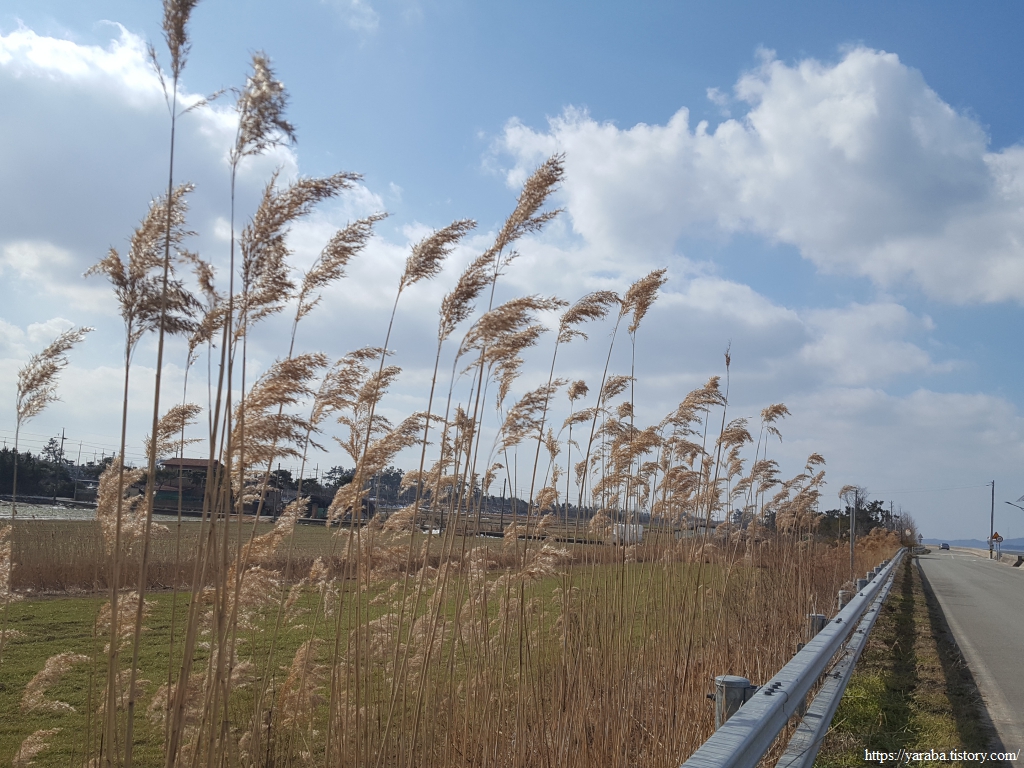 노을길 도로변의 갈대가 발걸음을 붙잡는다. 수채화로도 유화로도 흉내 낼 수 없는 풍경화 한 폭이다.