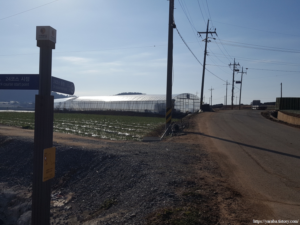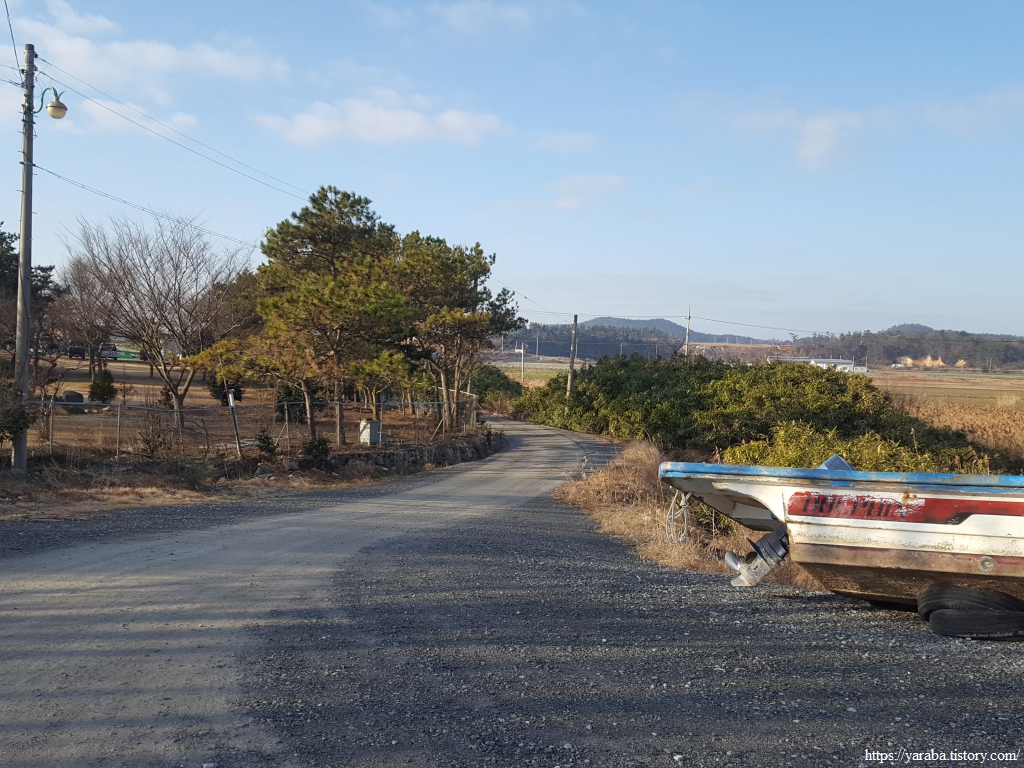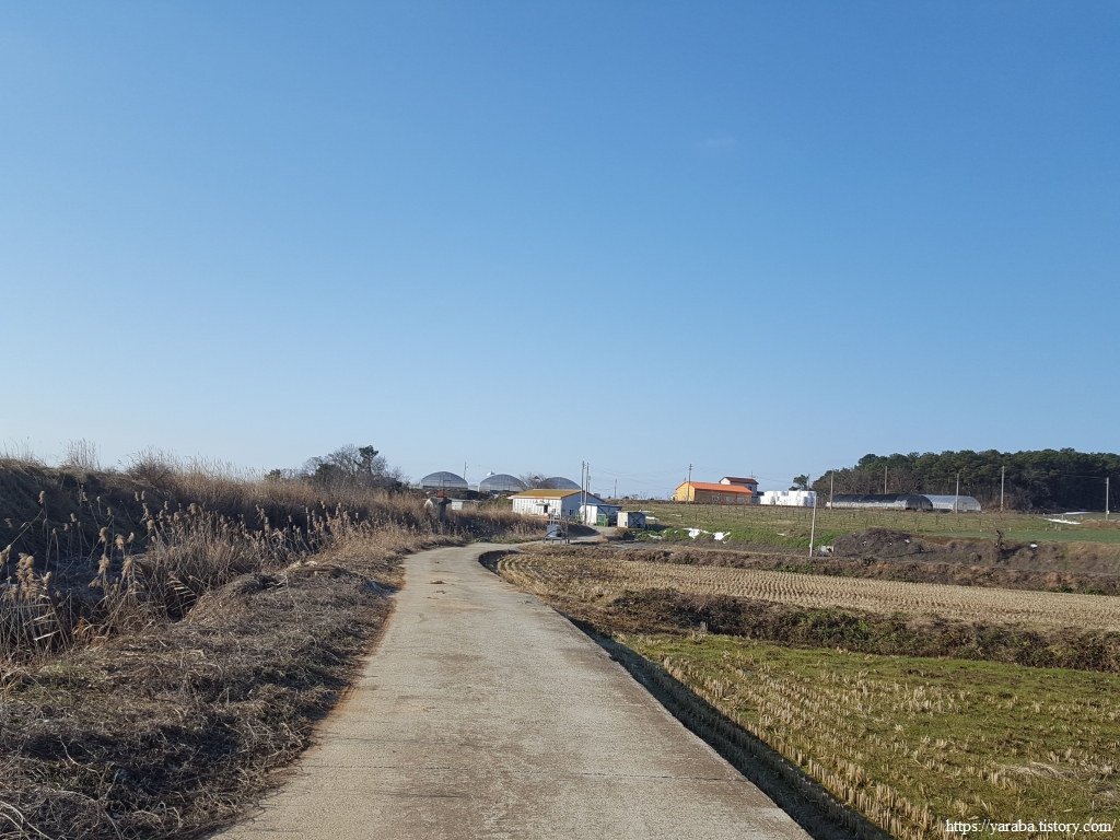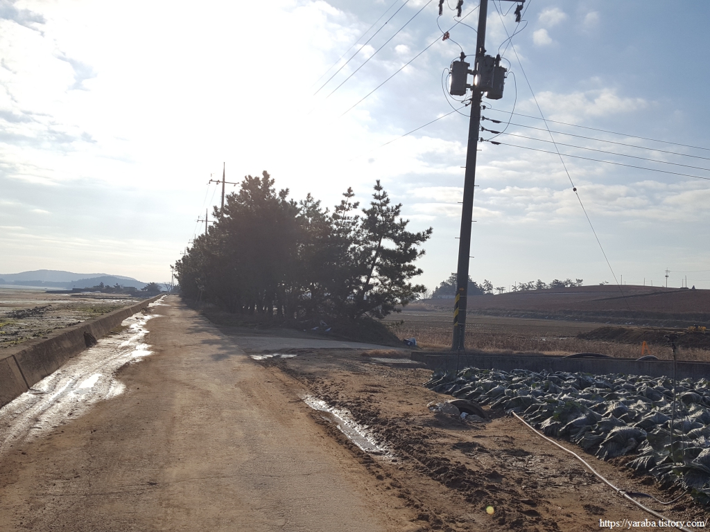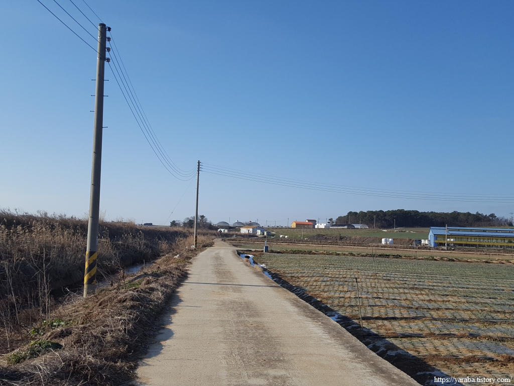 해안을 이어가던 길은 백동마을 인근에서 농로를 가로질러간다. 해안길이 중간에 끊어지기 때문이다.