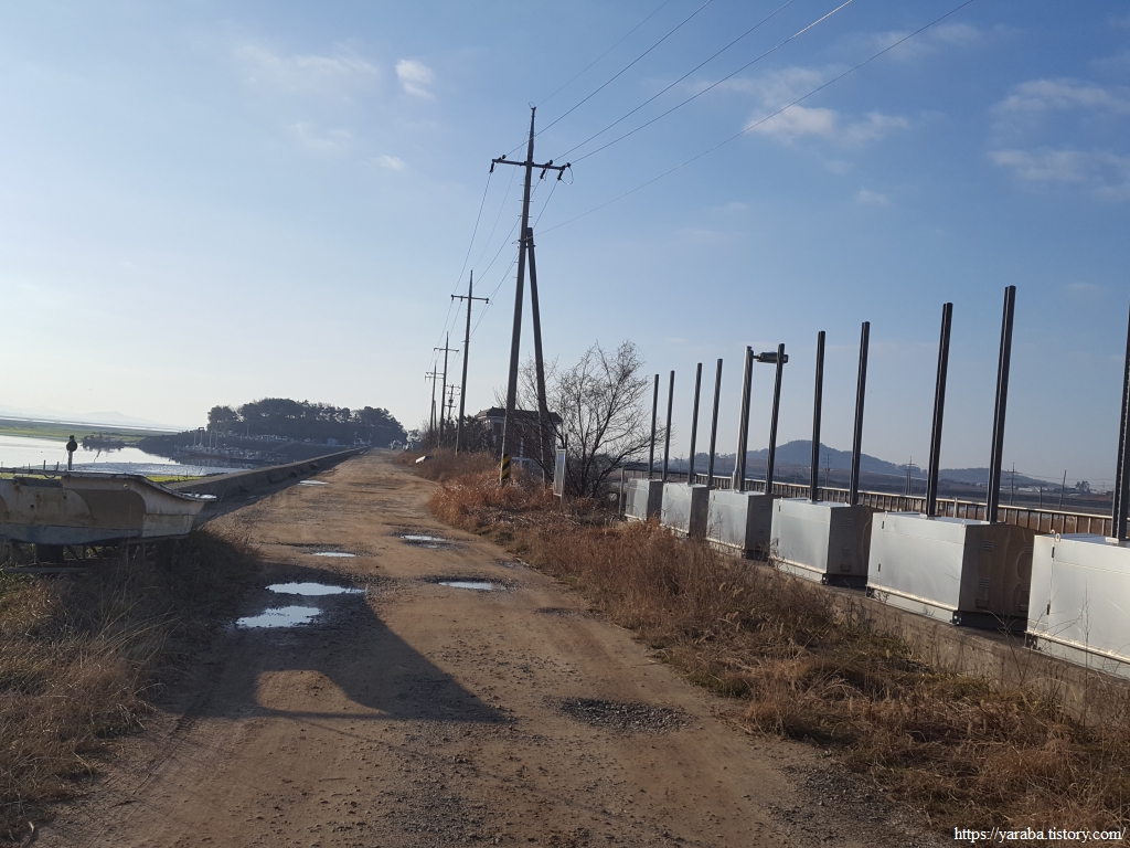 죽도를 지나서 다시 천장리로 향하는 방조제 길을 걷는다.