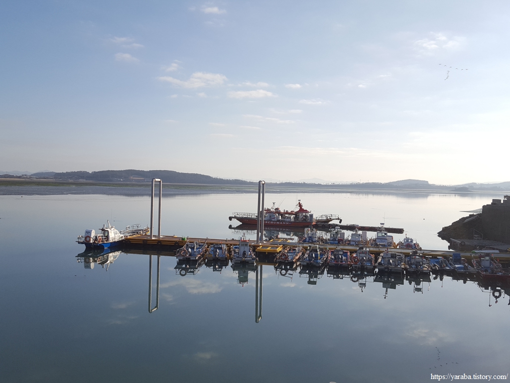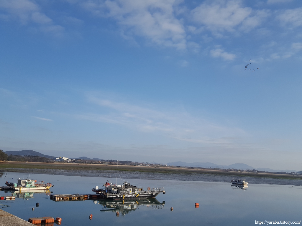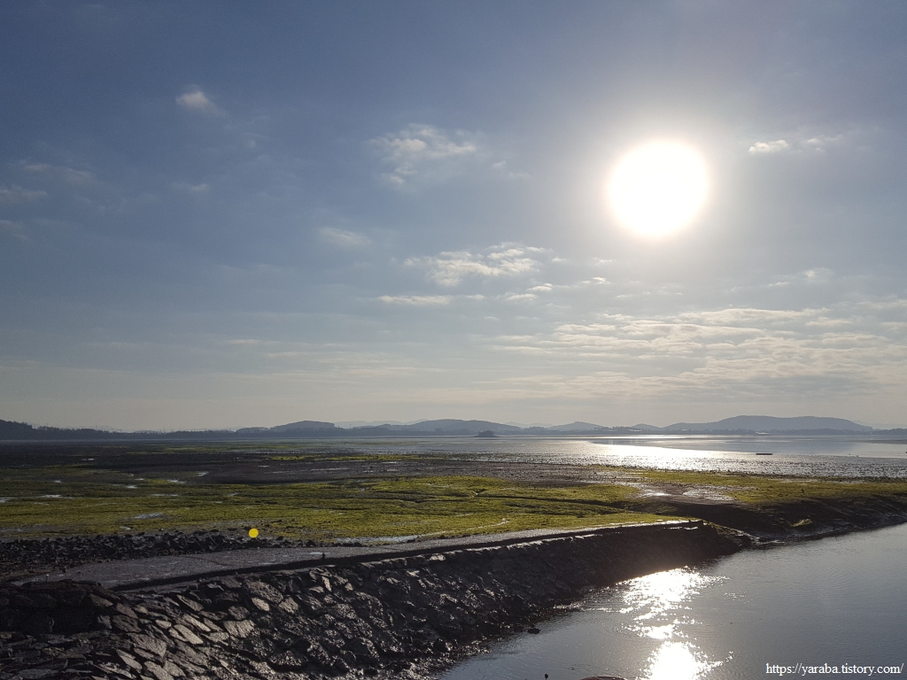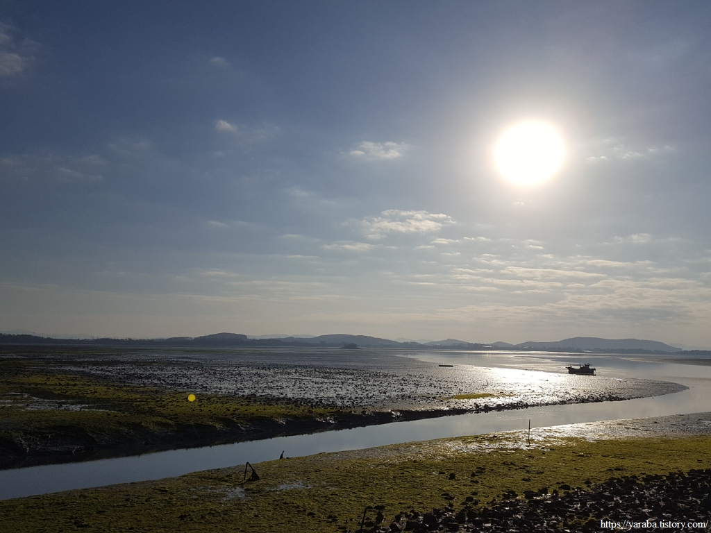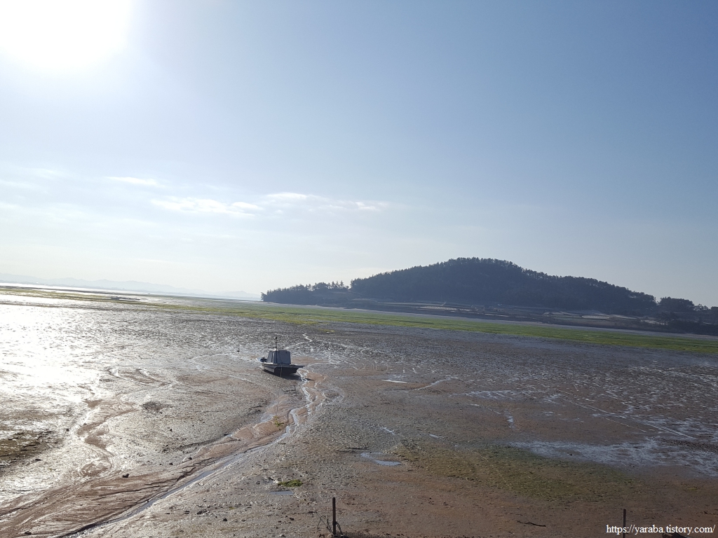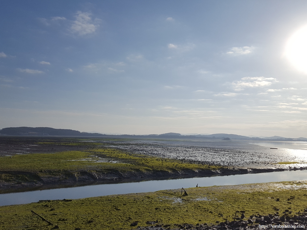 일출 시간이 한참 지나기는 했지만 물 빠진 갯벌을 반짝이게 하는 비추는 아침의 태양은 동해의 일출과는 전혀 다른 맛을 선사한다.