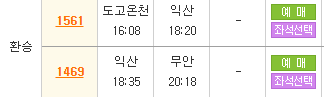 다음날 아침 함평에서 돌머리로 가는 버스 시간은 다음과 같다.