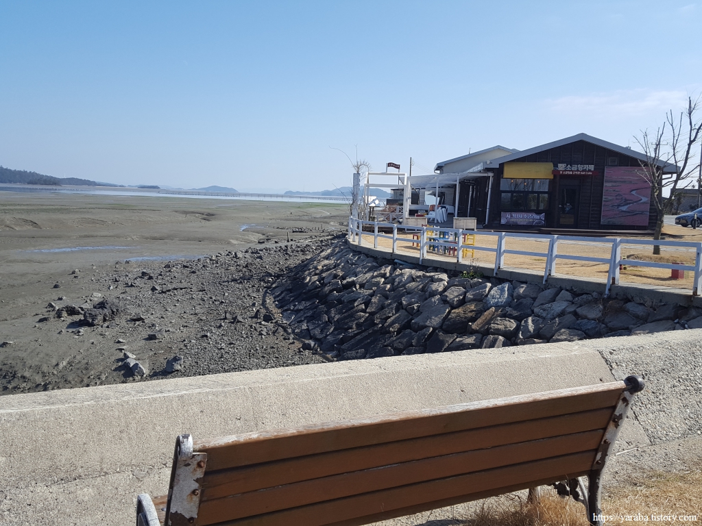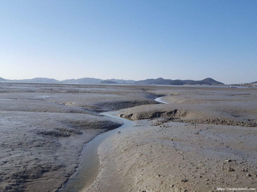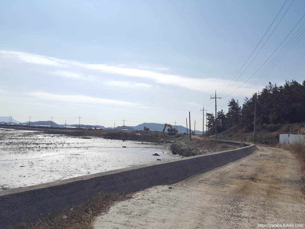 해변 방조제 길을 걸으니 또다시 갯벌을 마주한다. 노는 땅처럼 보여도 바닷물이 오가면서 생명을 품고 있는 공간이고, 지구를 살리고 우리에게 유익을 가져다주는, 보존해야 할 곳이다. 갯골이 선명한 갯벌을 보면 물이 들어온 상태의 모습은 어떨지 쉽게 상상이 가질 않는다.