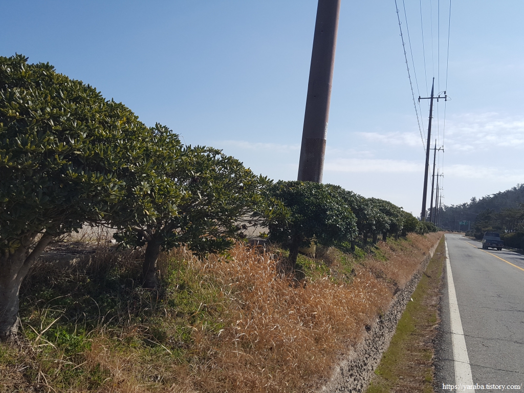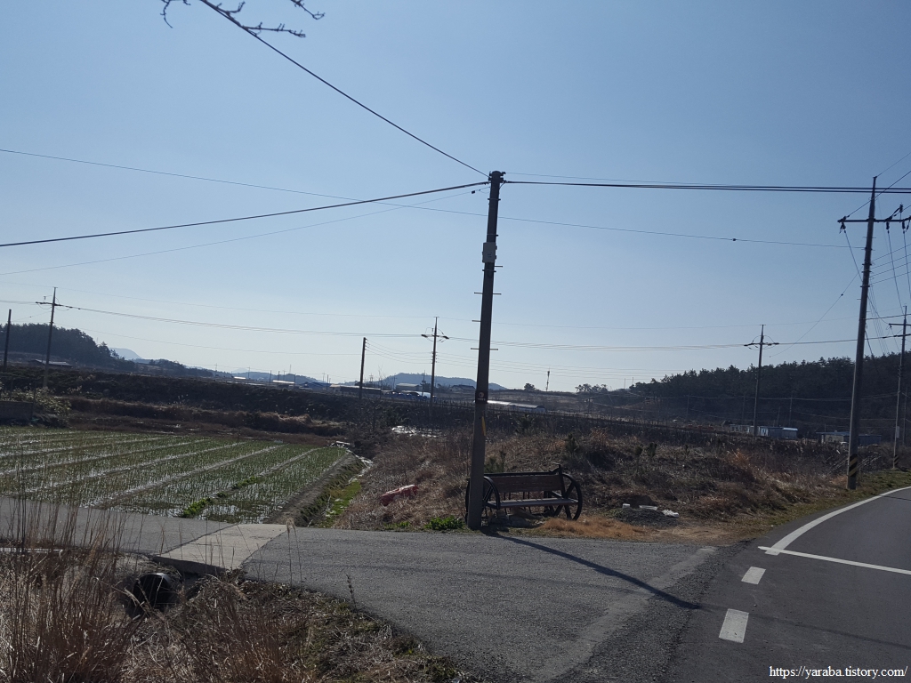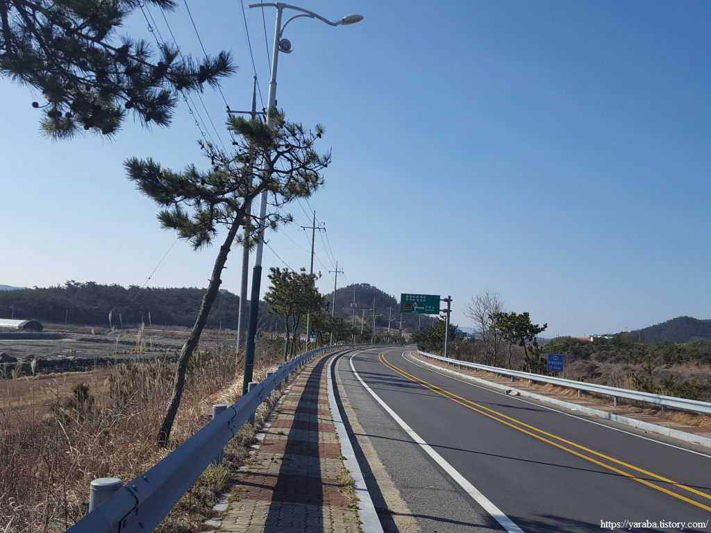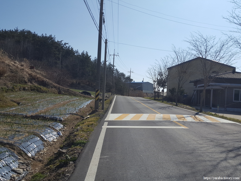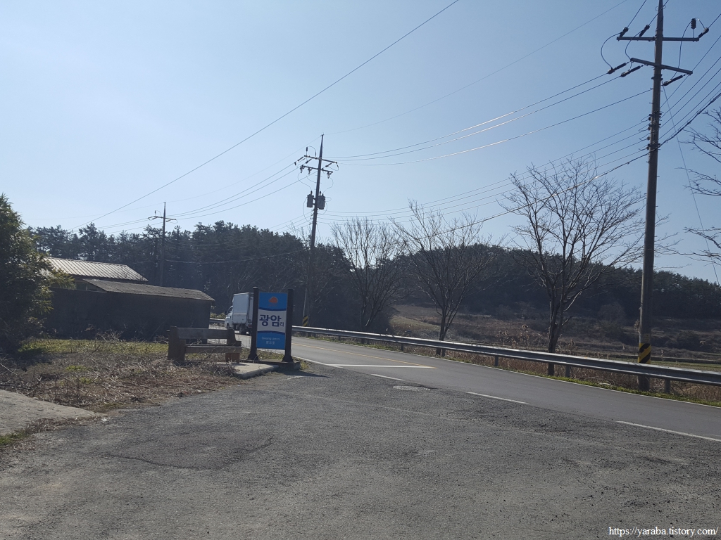 광암마을에 들어서면 길은 얼마간 갓길이 넓지 않은 도로를 따라 걷는다.