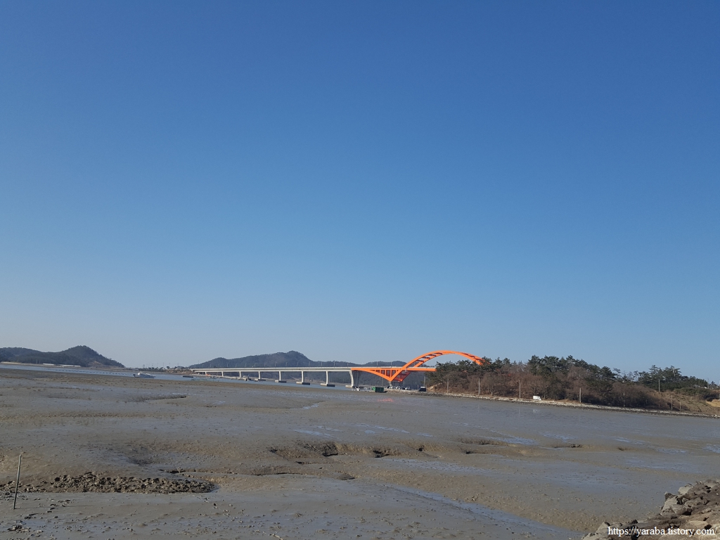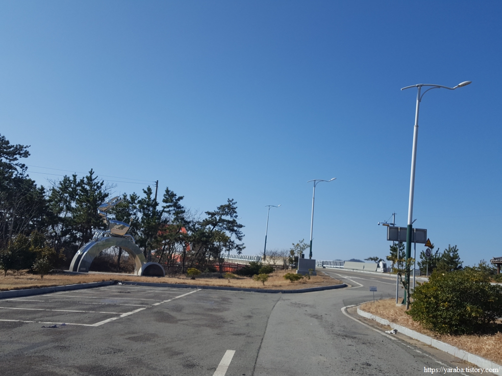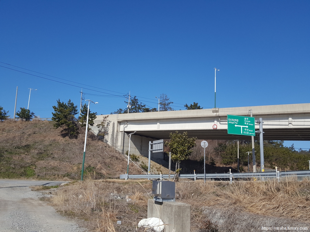 가파른 계단을 오르면 지도증도로 도로로 올라서고 도로를 따라서 증도대교를 넘는다.