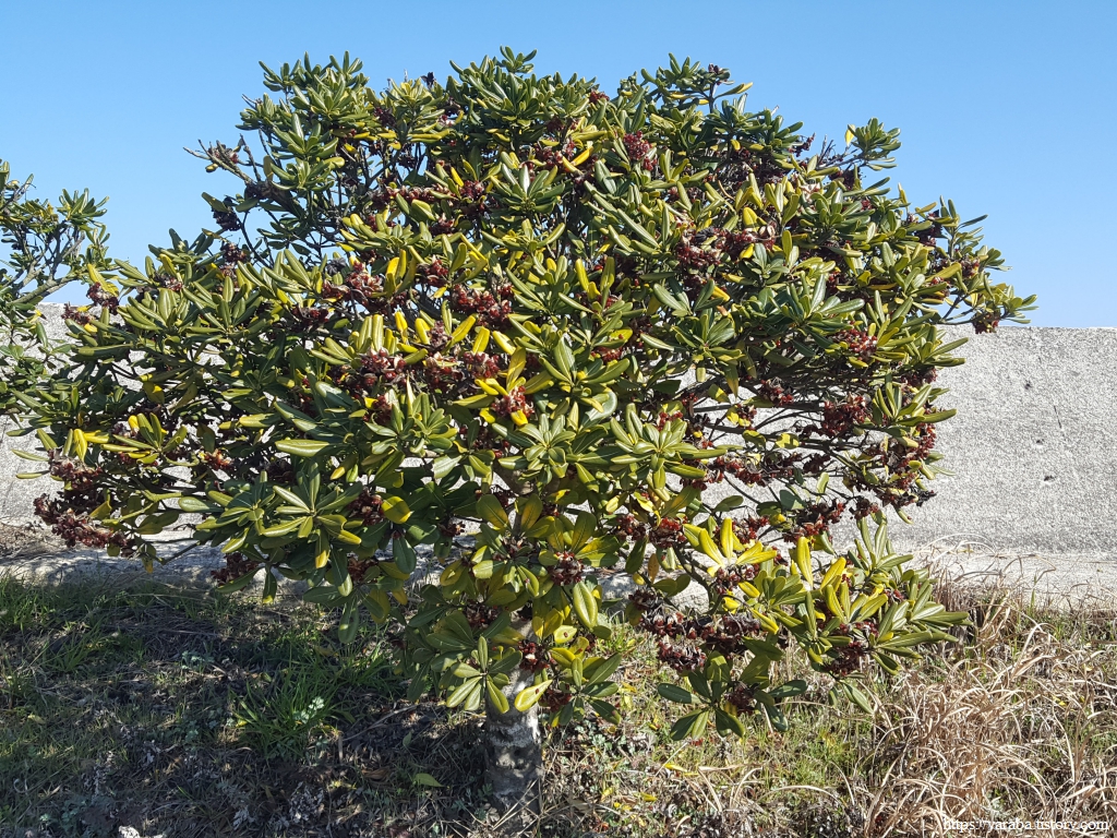 제주도에서 만났던 돈나무 가로수를 이곳에서 만난다. 붉은 열매로 존재감을 뽐내던 돈나무의 열매는 세 갈래로 갈라져서 마치 건포도와 같은 질감을 가질 정도로 잘 건조되었다. 고혈압, 동맥경화 등 약용으로 쓰인다고 한다. 냄새가 나서 제주도에서는 똥나무라고도 불렸다.