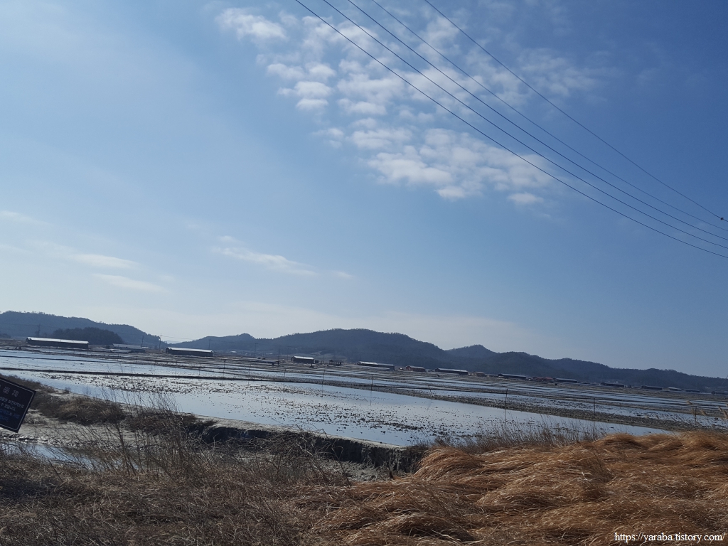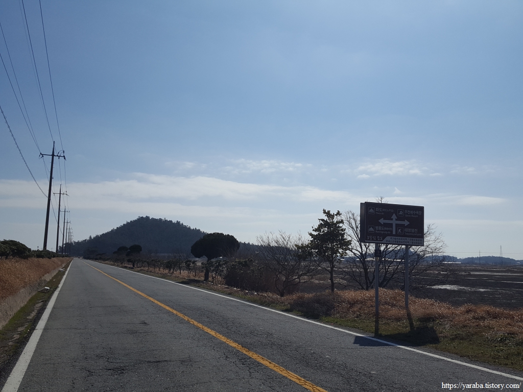 길 우측으로는 광활한 태평염전의 모습이 시야에 들어온다. 도로표지판에 태평염전을 비롯하여 병풍도, 화도, 우전 해수욕장이 등장하는데, 이어서 걷는 서해랑길 27코스는 화도 앞을 거쳐 우전 해수욕장으로 향한다.