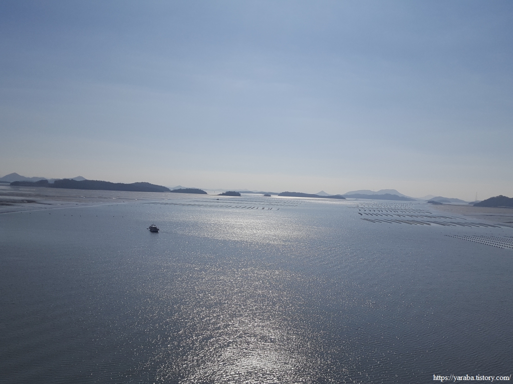 물길을 따라 이어진 김양식장의 모습도 일품이다. 세계 김 생산량의 70% 이상이 우리나라라는 사실은 이런 그림 속에 있다. 바라는 마음이 있다면, 김양식에 사용하는 각종 폐자재가 해양쓰레기로 그냥 버려지지 않도록 잘 관리했으면 하는 것이다. 규제로 스티로폼은 줄이고 있지만 많은 기구를 사용할 수밖에 없는 김양식에서 사용 후 자재를 잘 정리했으면 하는 마음이다.