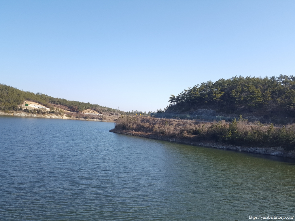 코스를 마무리하고 제방 앞 벤치에 앉아서 넉넉히 휴식을 취한다. 아직은 쌀쌀한 겨울, 그늘 없는 양달만 찾아간다. 구름 한 점 없는 하늘에서 쏟아지는 따스한 태양빛이 그저 고마울 뿐이다.