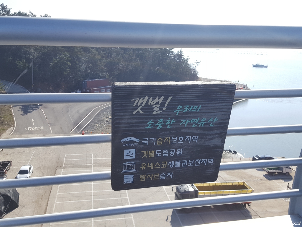 증도대교에 붙어 있는 표식. 증도갯벌은 유네스코 생물권보전지역, 국토해양부 국가습지보호지역, 람사르습지에 등록되었고 갯벌 도립 공원도 있다는 안내이다. 증도에 들어가면 심하다 싶을 정도로 자주 만나게 될 표식이다.