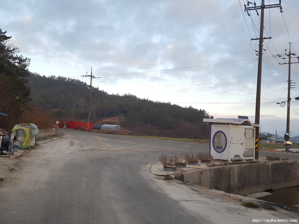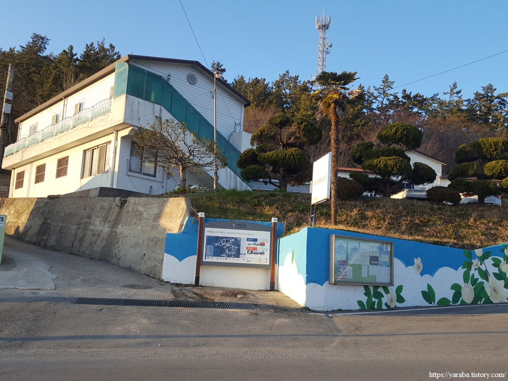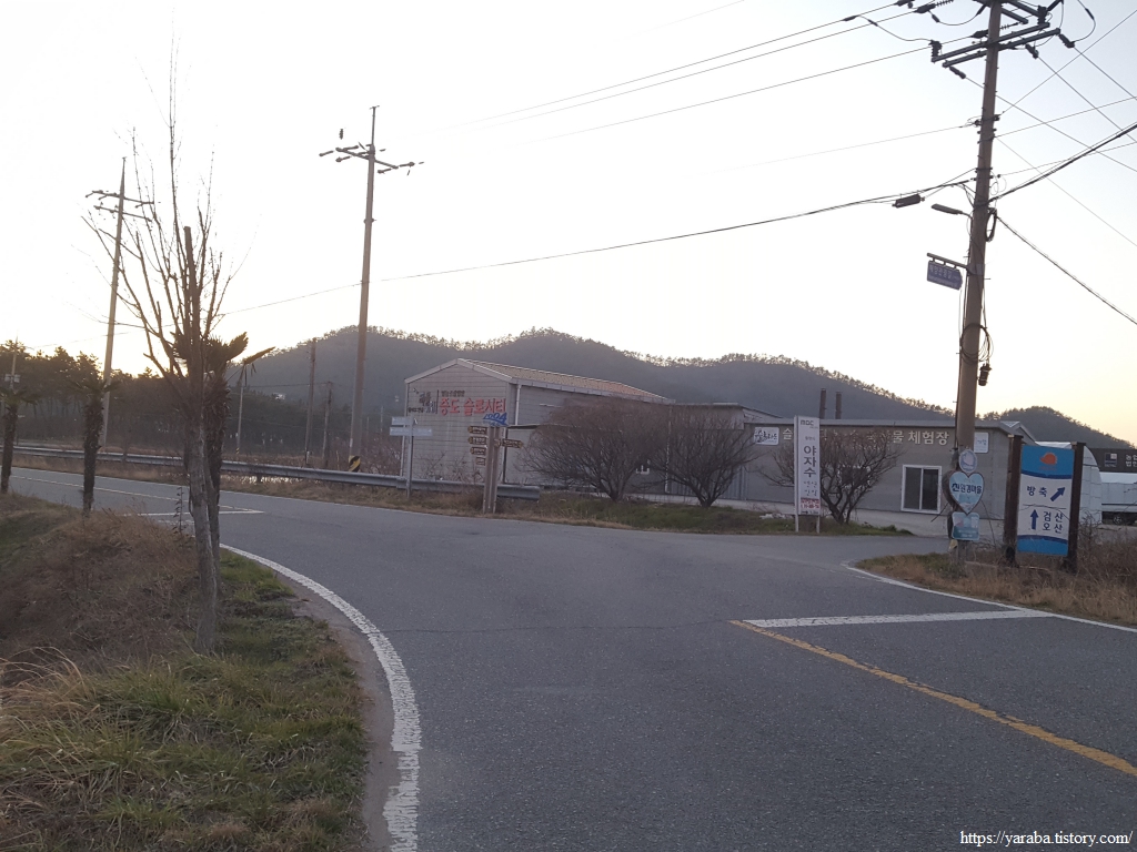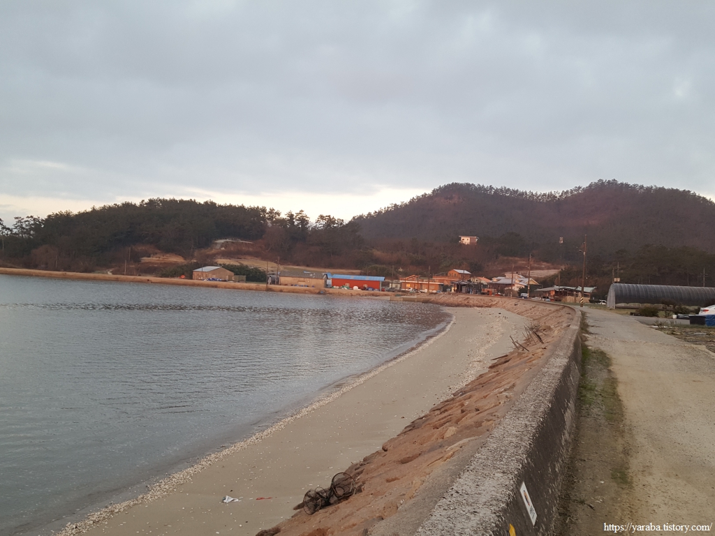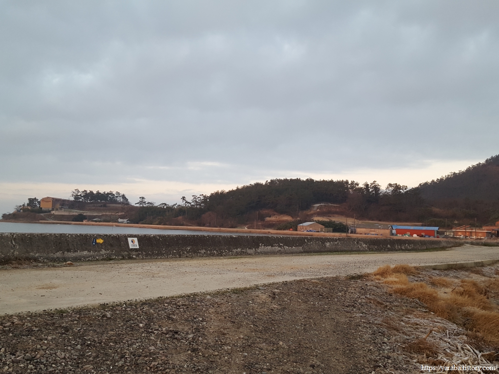 원래의 서해랑길은 오산마을 해변을 돌아 언덕 위 리조트 앞을 지나서 보물섬길 도로로 나오는 것이었지만 아무래도 길을 막은 모양이다. 지금은 오산마을에서 바로 다시 도로로 나가서 보물섬길을 따라 서쪽으로 이동한다.