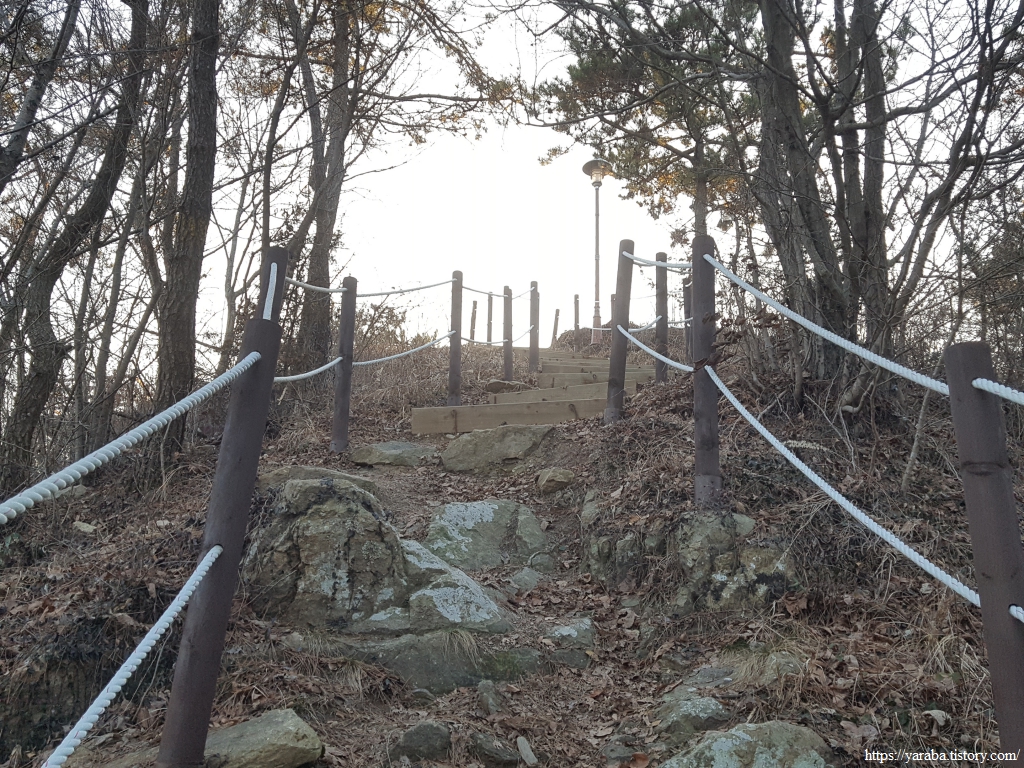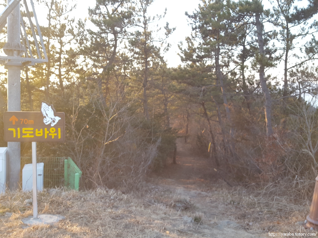 기도바위 표지를 지나 계단을 오르면 정상이 얼마 남지 않은 것이다.